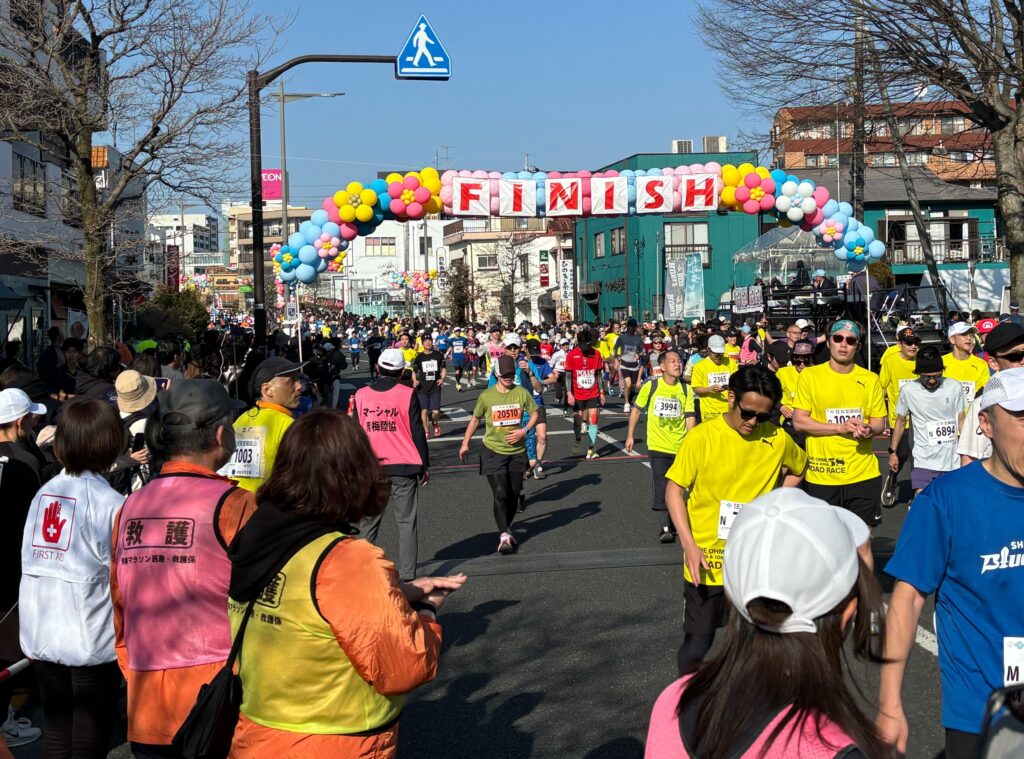 最後は青梅の街中に戻り、往路以上に熱気あふれる応援のシャワーを浴びます。「あと少し!」「おかえり!」の声に励まされ、最後の力を振り絞ってフィニッシュゲートへ。