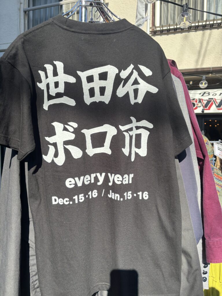 「every year Dec.15・16 / Jan.15・16」と刻まれたTシャツ。この決まった日に必ず開催されるという頑なな伝統が、逆に今の時代にはかっこよく映ります。