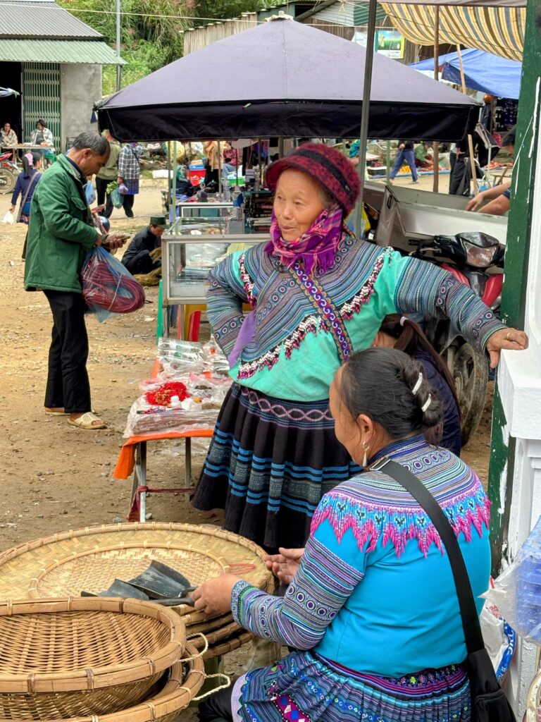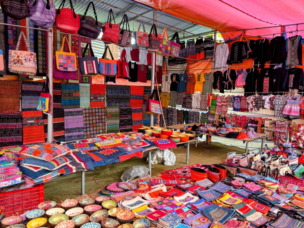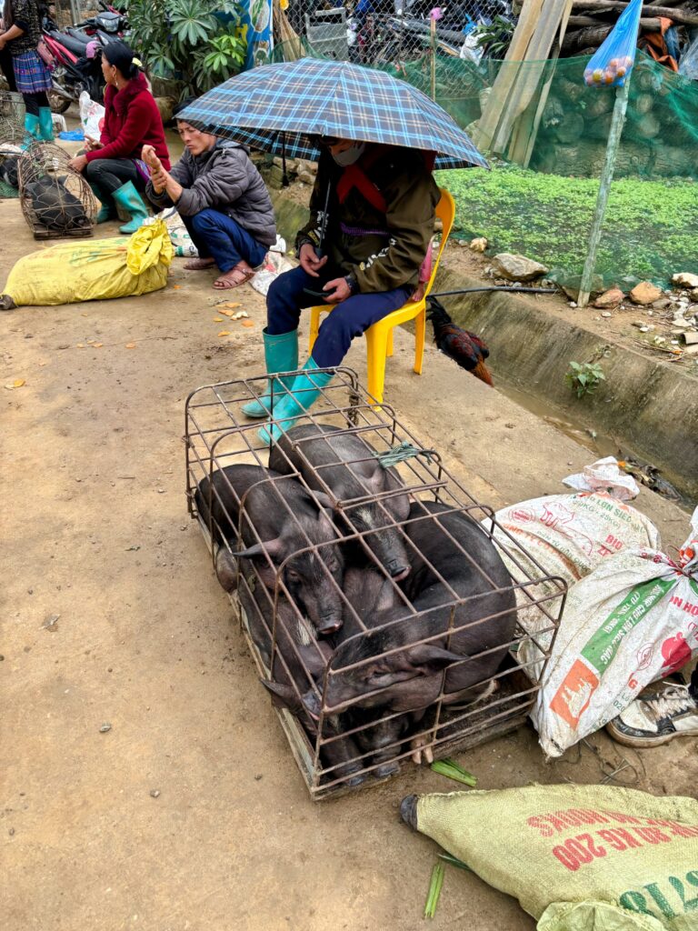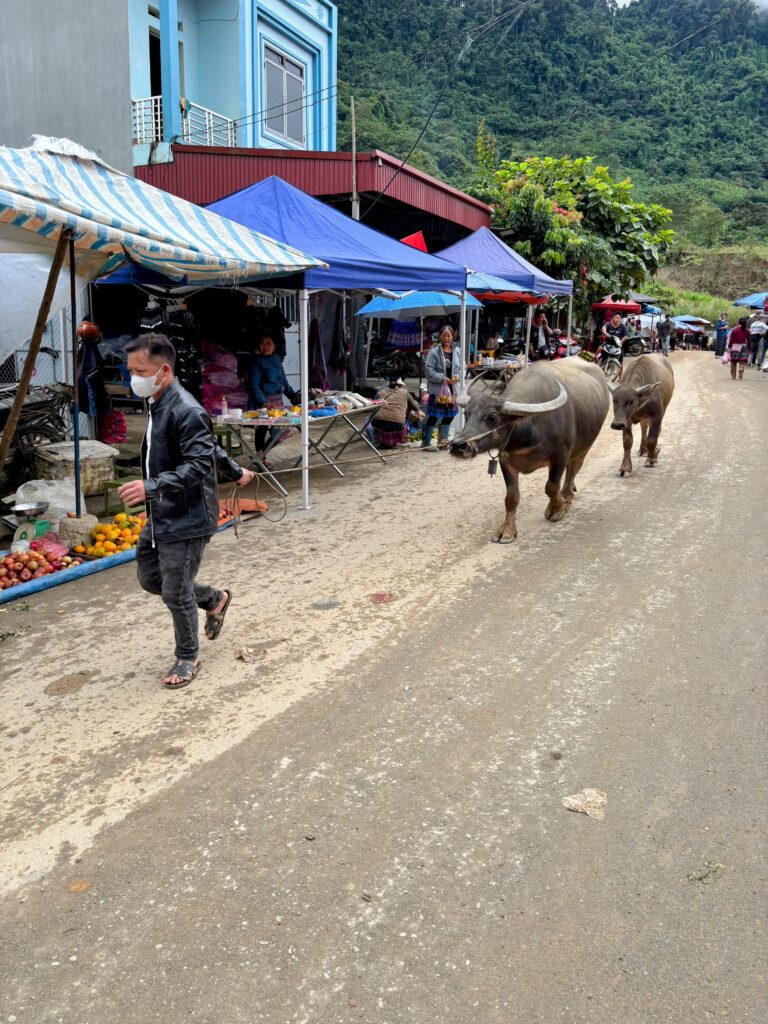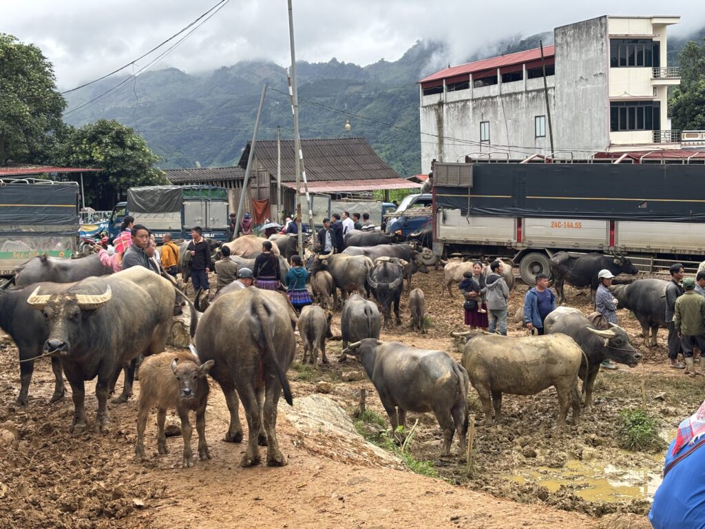 主に花モン族、ザイ族、ヌン族が集まってきて、家畜類、食糧品、服、雑貨などが売買される。地元民のマーケットである。観光客はわずかしかいないが、観光客向けの工芸品も売っており、品質もサパで売っているものと変わらない。