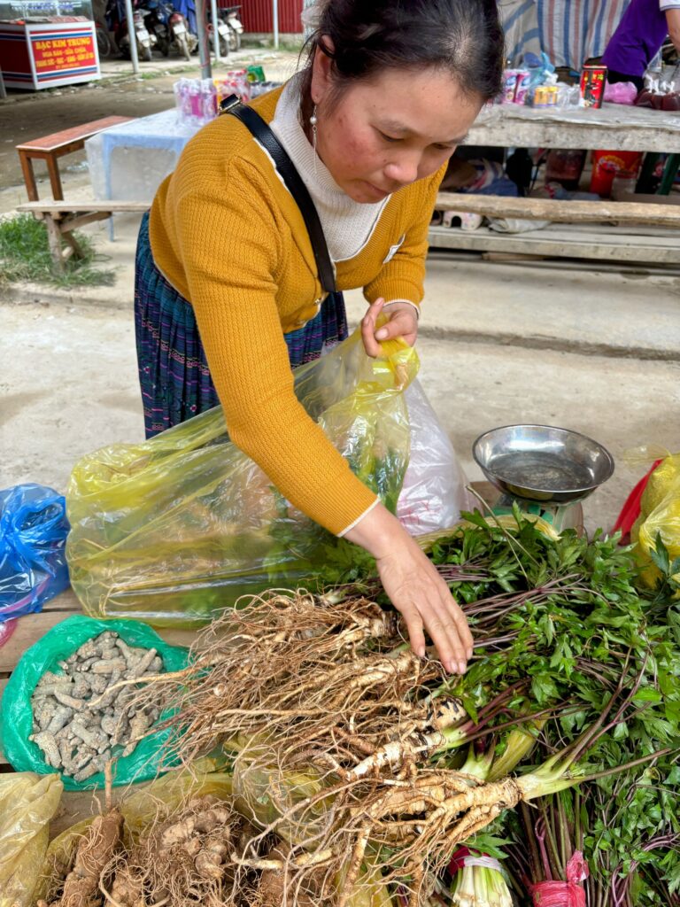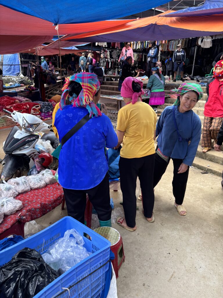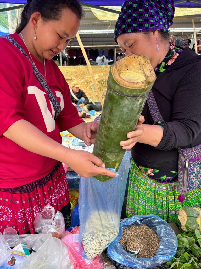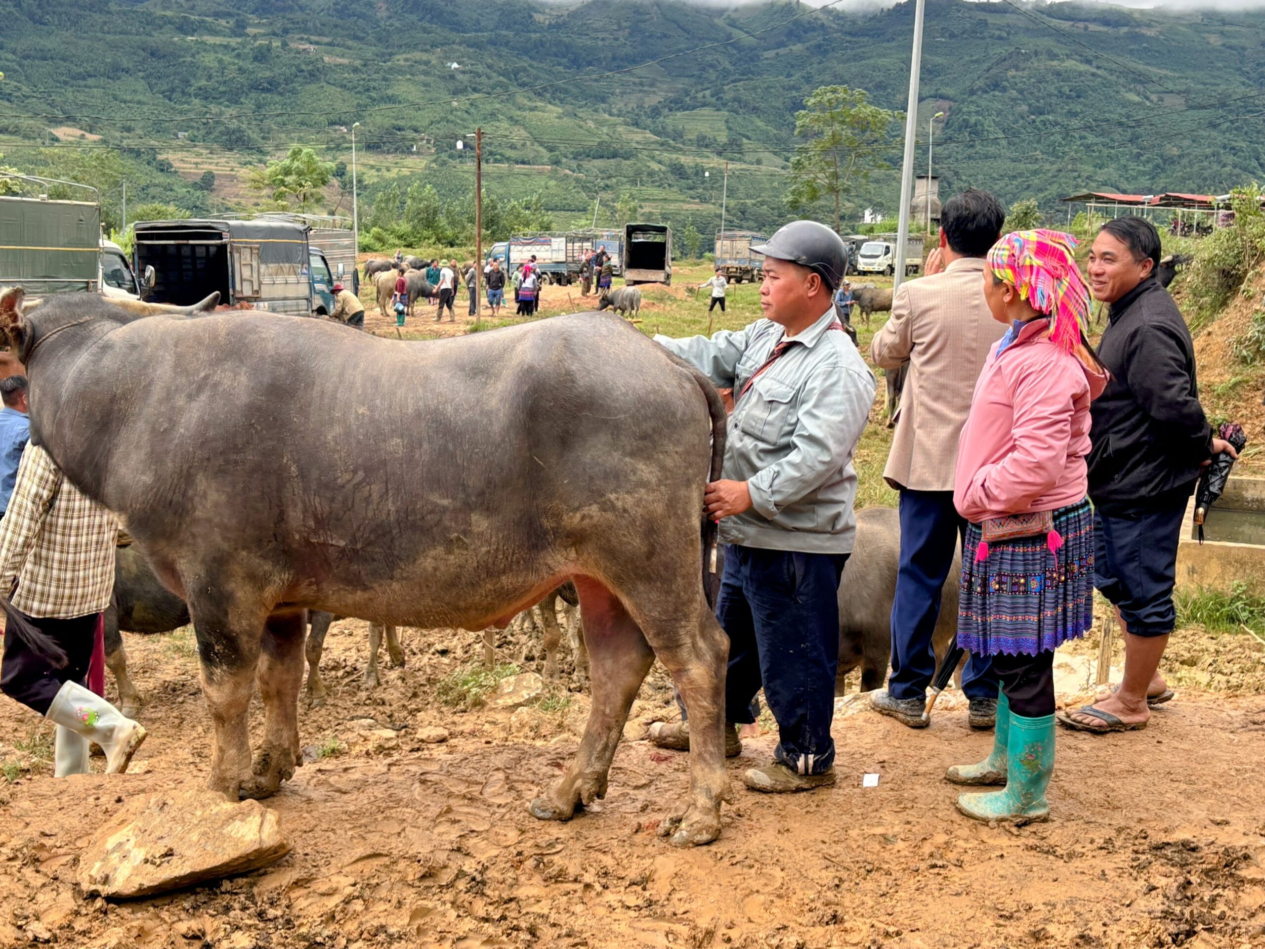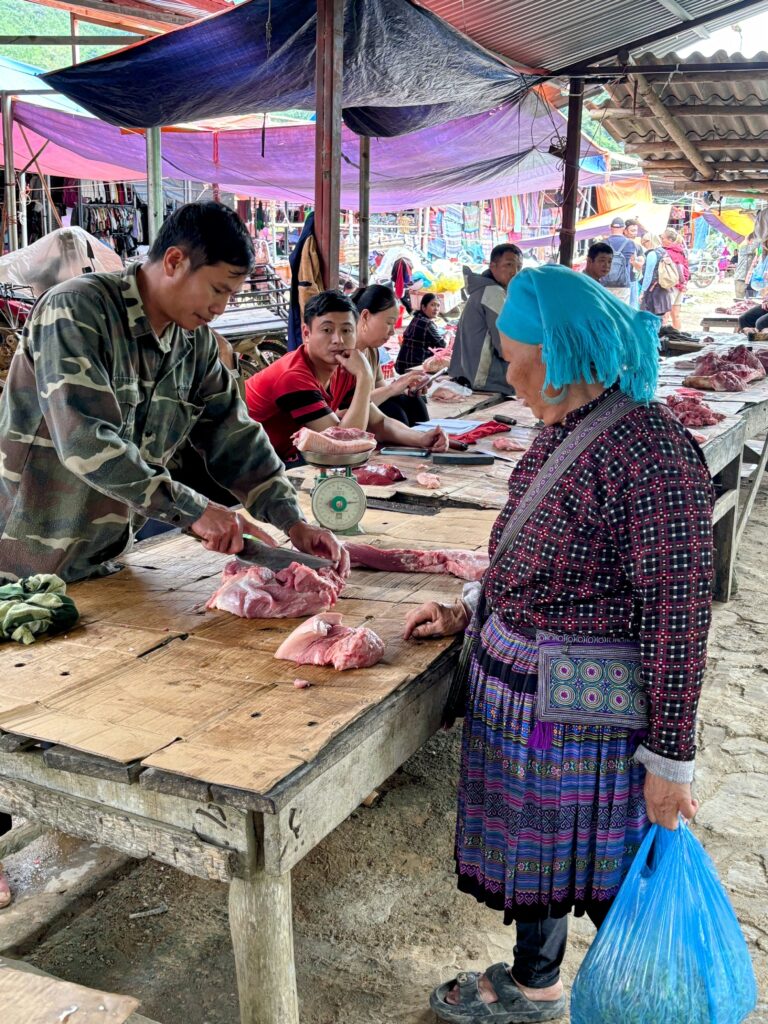 主に花モン族、ザイ族、ヌン族が集まってきて、家畜類、食糧品、服、雑貨などが売買される。地元民のマーケットである。観光客はわずかしかいないが、観光客向けの工芸品も売っており、品質もサパで売っているものと変わらない。