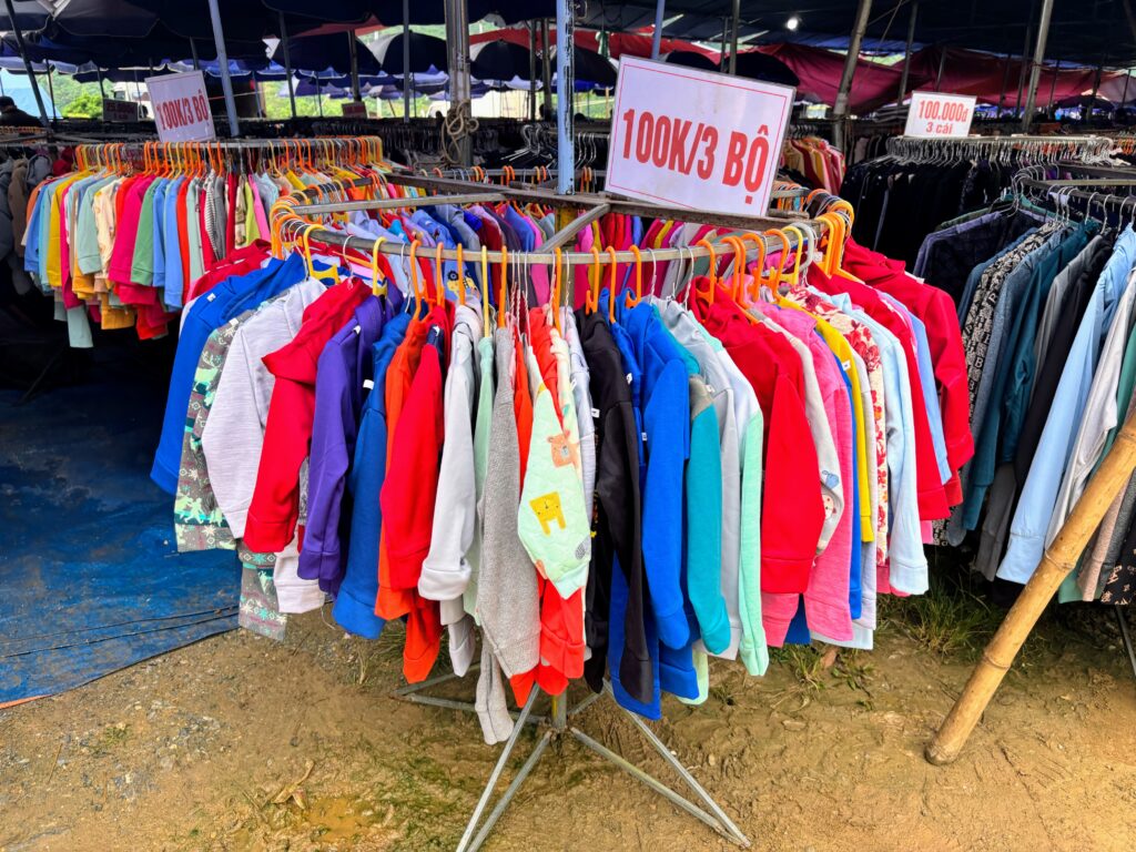子供の服類は3つで10万ドン(約700円)であった。若者世代は、民族衣装を着なくなっている。