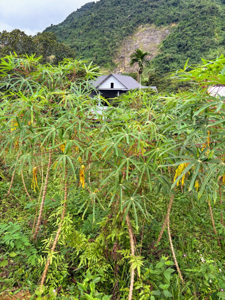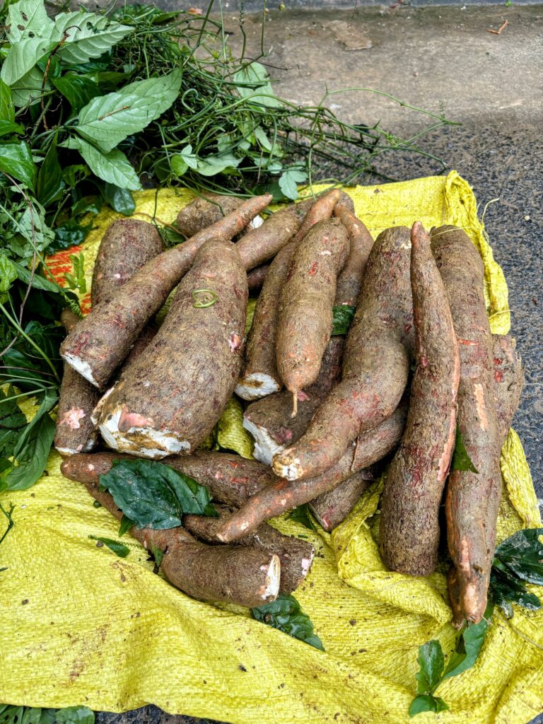 タピオカの木もたくさん植えられていた。地面に埋まっている根の部分がタピオカの原料になる。