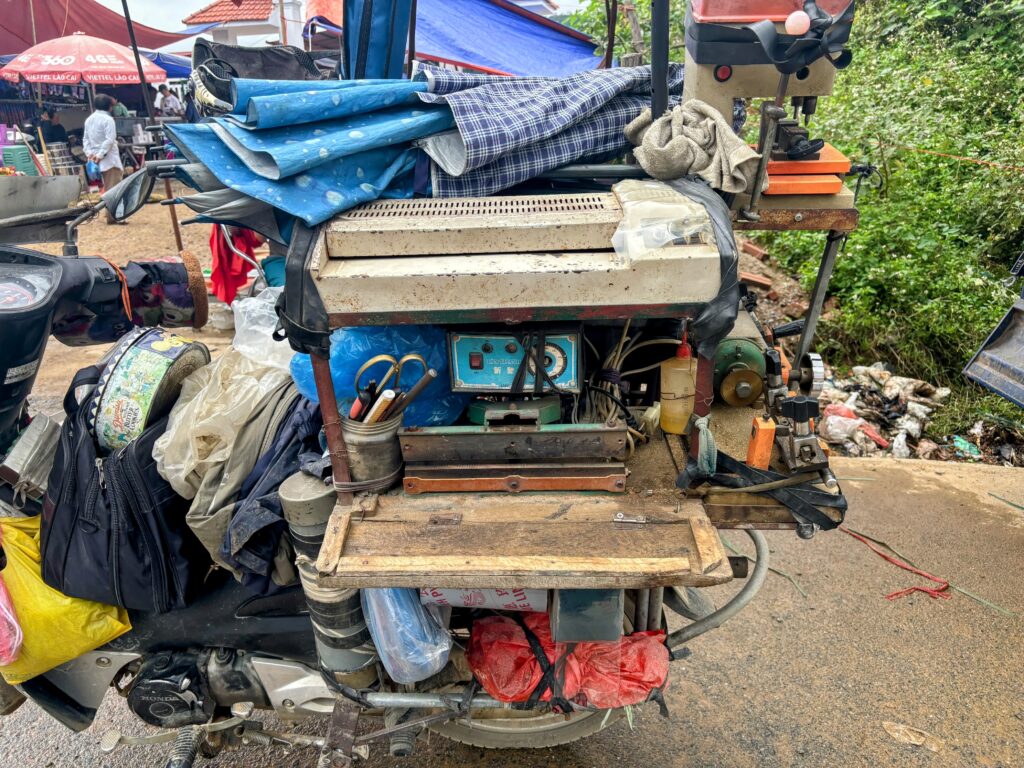 スペアーキーを作る機械がバイクに乗せてあった。この辺りの村でも、鍵の需要はあるようである。