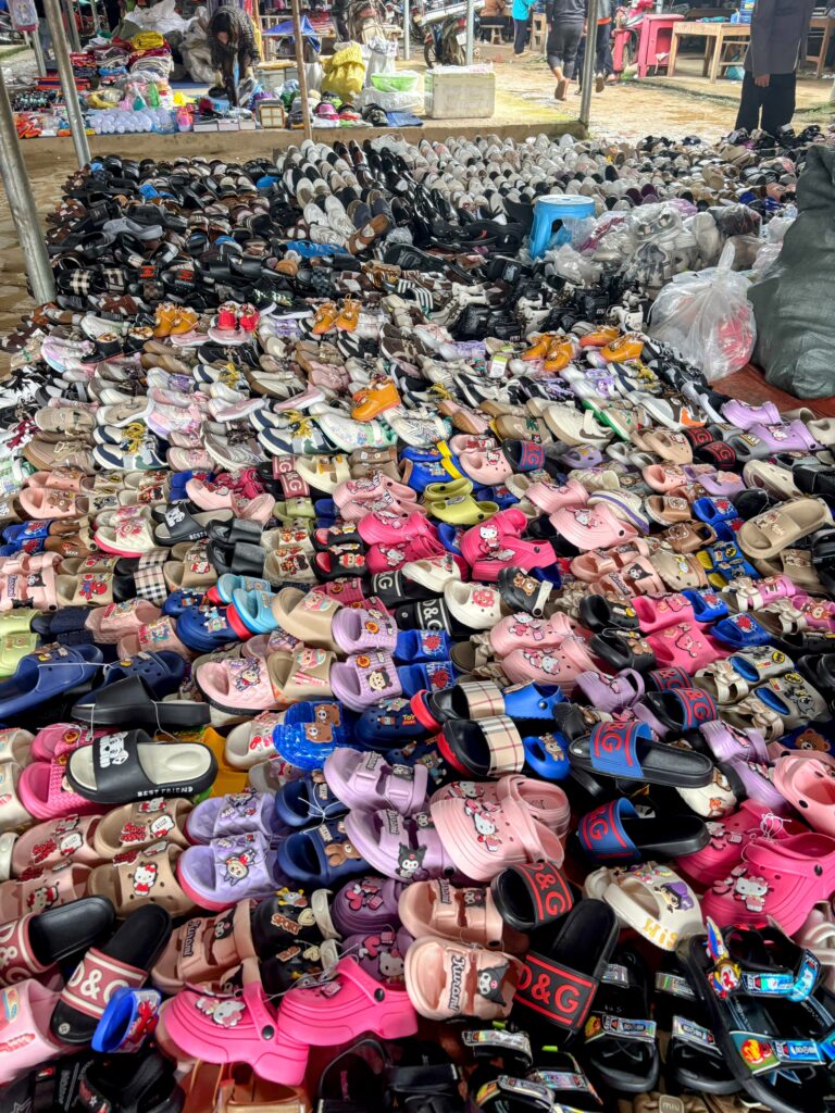 地元の人の足元は長靴スタイルとサンダルスタイルに二分される。ぬかるんだ路面、および色々汚物が道にあるので、長靴が一番楽なのだろう。一方、暑さ対策にはサンダルで歩く人も多いが、一瞬で汚れてしまう。日本人にはハードルが高い。