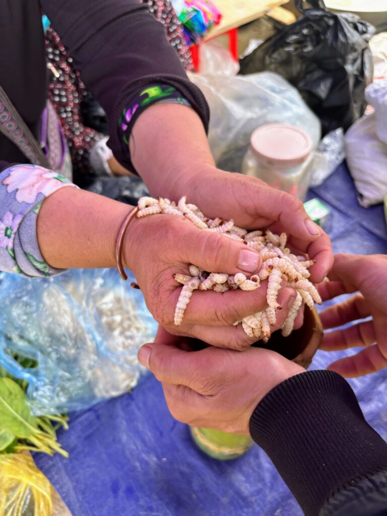 おばあちゃんが子供を背負って世話をしながら市に来ていたりもする。食堂もありご飯を食べたり、この市で久しぶりに会う人たちとのおしゃべりに余念がない。村の交流の場でもある。
