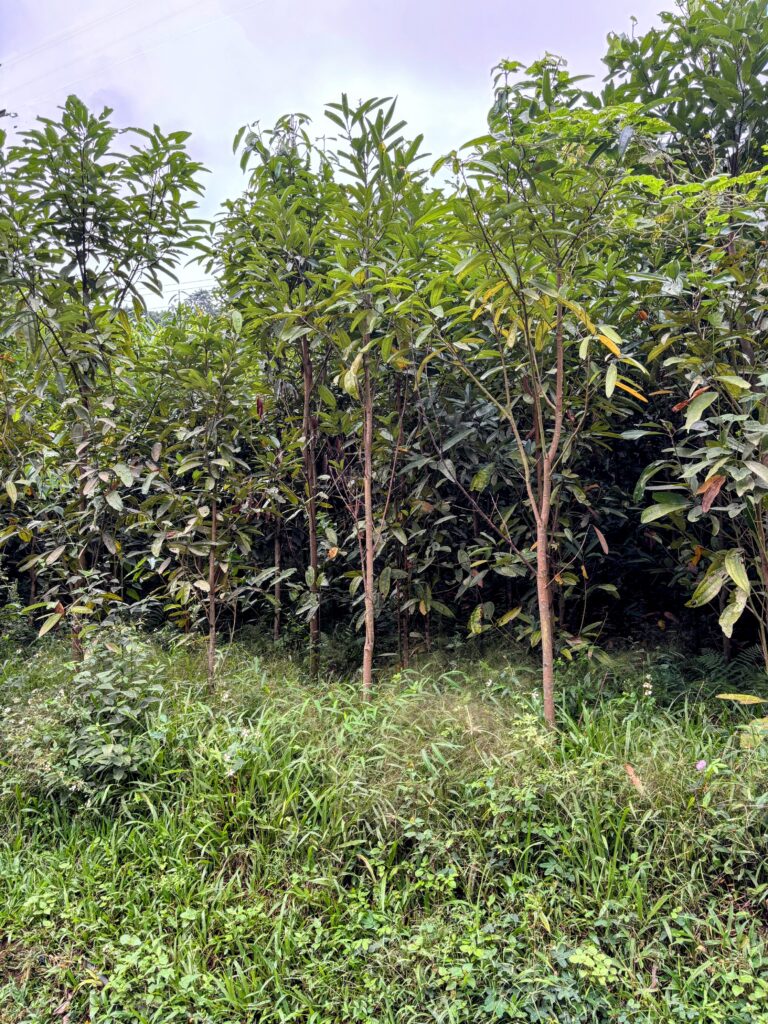 シナモンは樹皮をはぎ取って、乾燥させて作られる。樹齢としては7年〜12年くらいが収穫期間で、庭にあるくらいのサイズの木だった。太い幹は、家具などにも使われる。