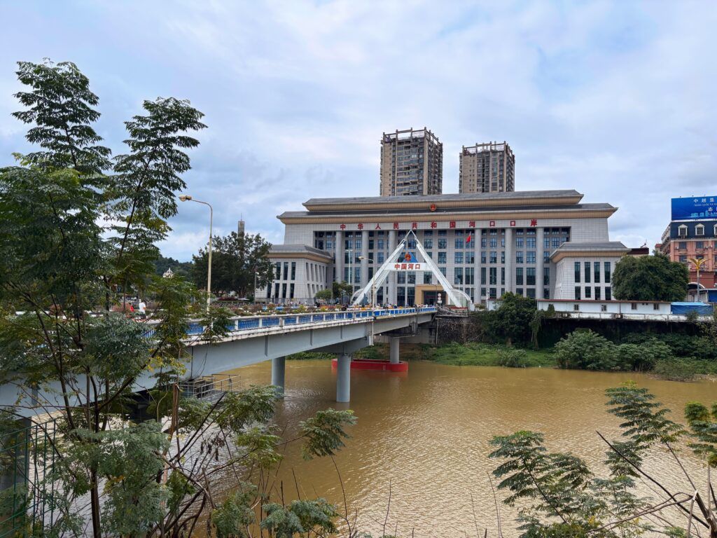 ラオカイは中国雲南省と接する国境の町。国境には2本の橋が架かっており、1本は鉄道用で、もうひとつは歩いて人が渡る橋となっている。ホーキエウ橋という。意外なほど川幅が狭く、1分もあれば渡れてしまう。