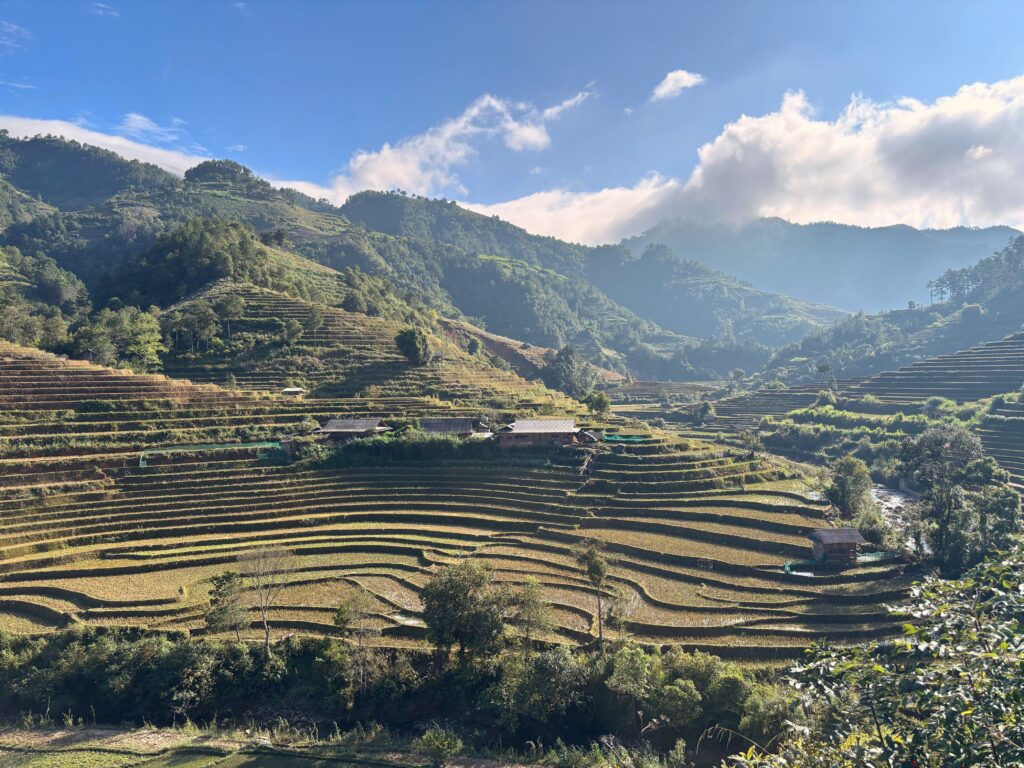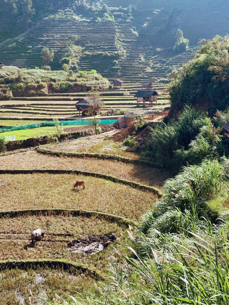 ホテルは綺麗な棚田の中にある。歩き始めてすぐに、思い描いてた通りの棚田の中を歩く。天気の悪かったサパからムーカンチャイに移動してきて正解。朝日が眩しいなかトレッキングを開始した。