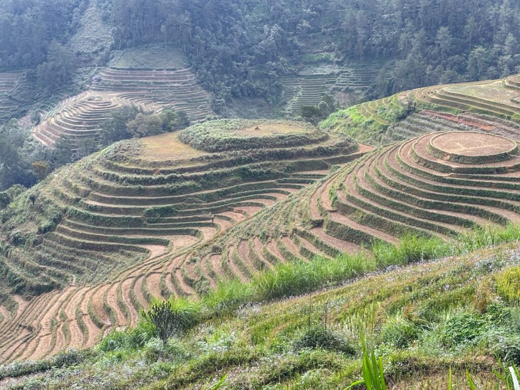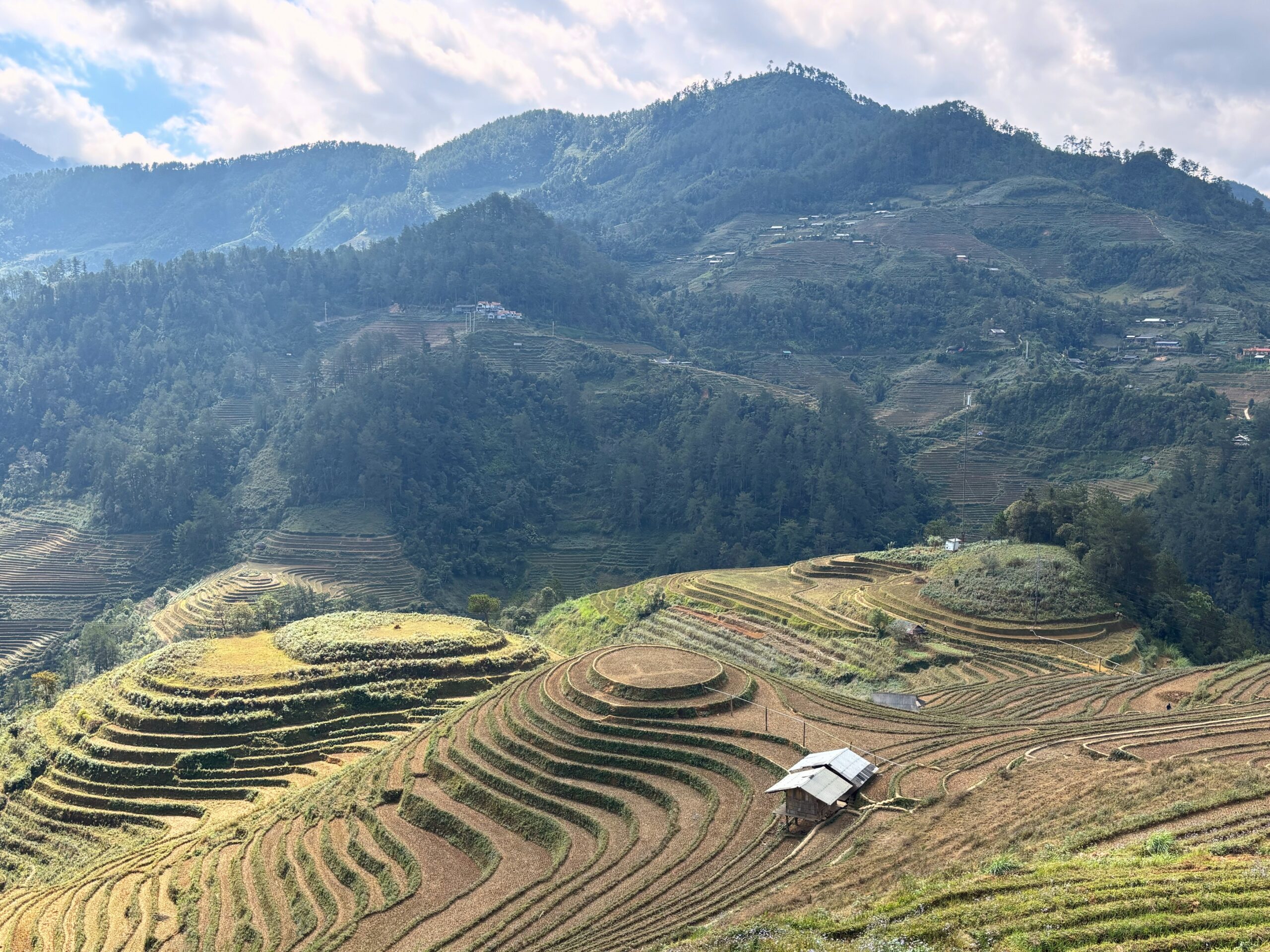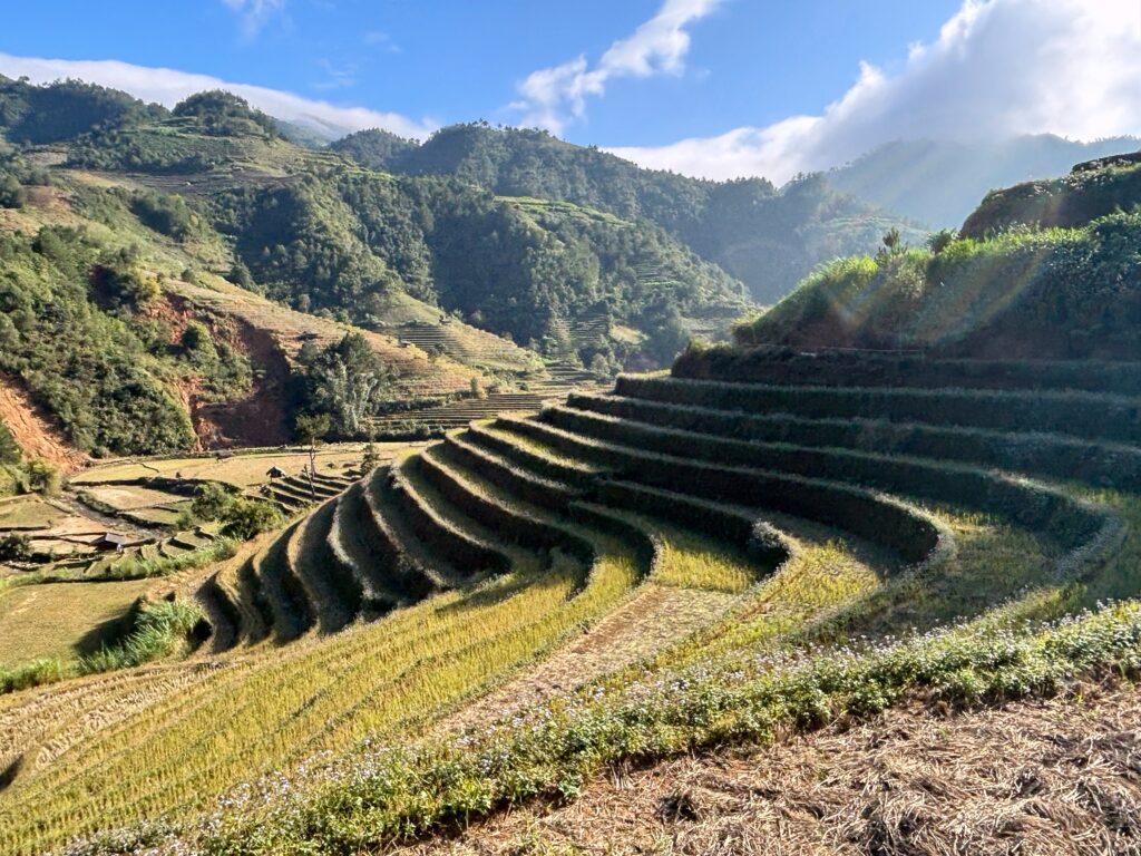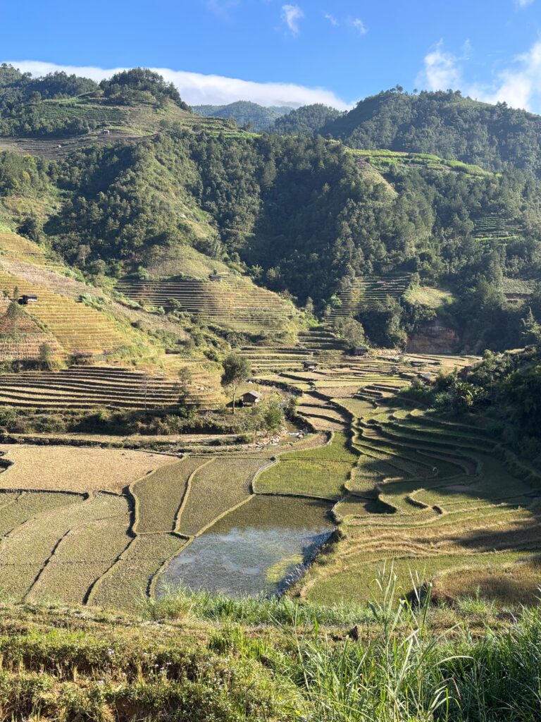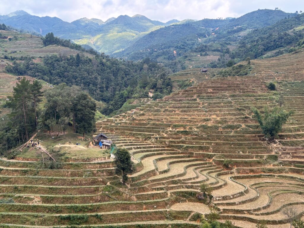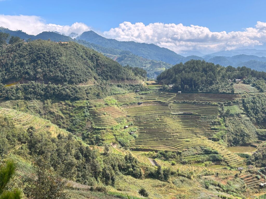 人間が工夫した故の棚田広がるベトナムの里山風景がどこまでもひろがる。