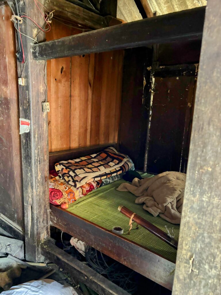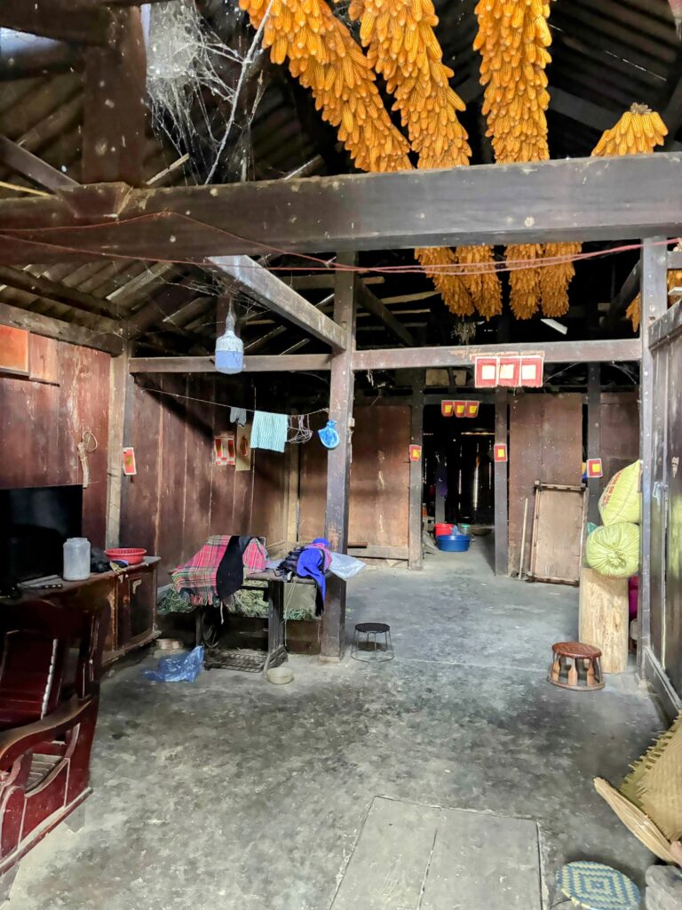 家は3つの部屋からなっている。土間で窓がないのが、モン族の家の特徴。一番奥に台所がある。