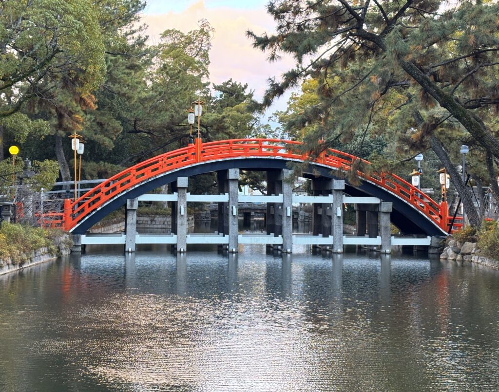 鳥居をくぐると、住吉大社のシンボルの通称「太鼓橋」があります。