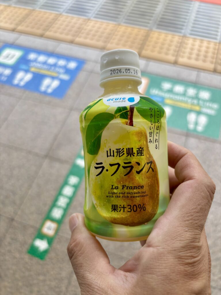 東京駅で山形県産ラ・フランスジュースを購入。東北旅行の思い出に浸る。