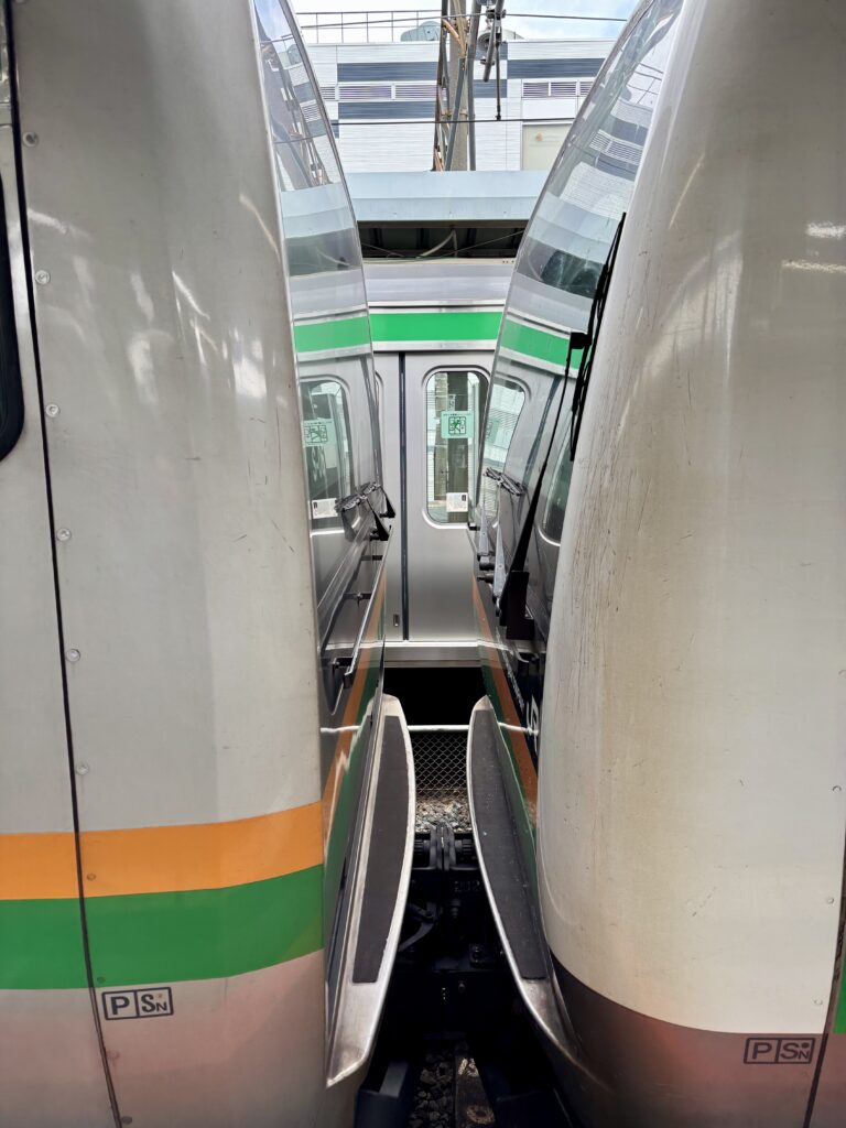 東京駅から高崎線の15両編成の車両の先頭に乗る。深谷の一駅手前の籠原駅で連結の切り離しがあり、10両編成になる。そのため、後ろの車両に乗り換える必要があった。
