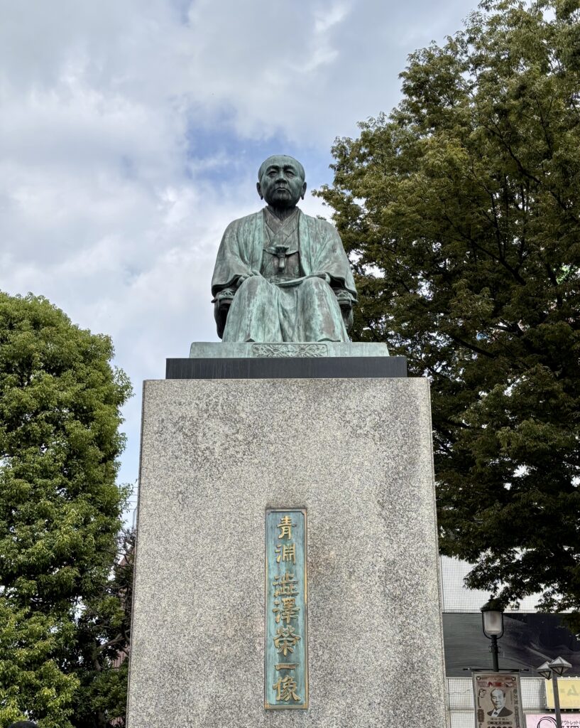 駅前には、渋沢栄一氏の銅像が鎮座している。街の象徴の一つ。