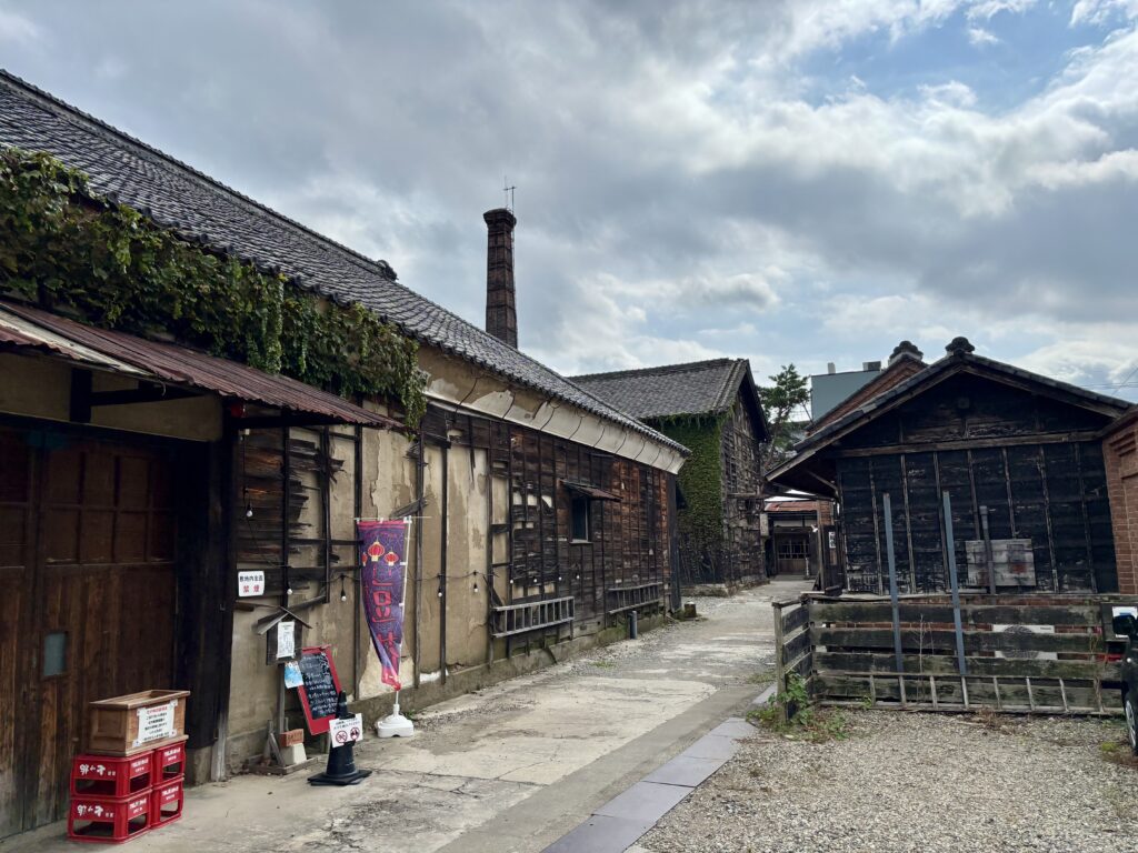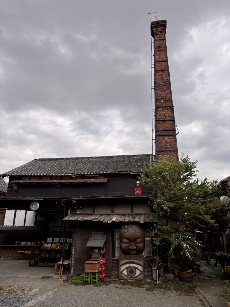 旧酒造の煙突が残っていて、「七ツ梅横丁」のシンボル的な存在である。