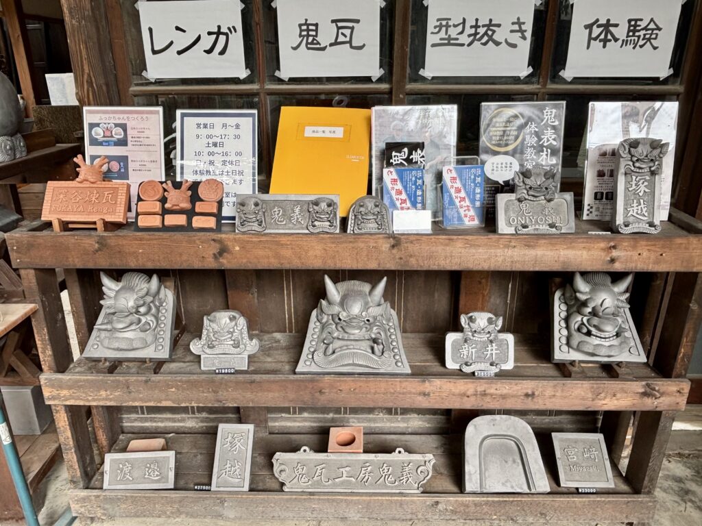 レンガの街であり、鬼瓦の表札も体験で作れるようだ。