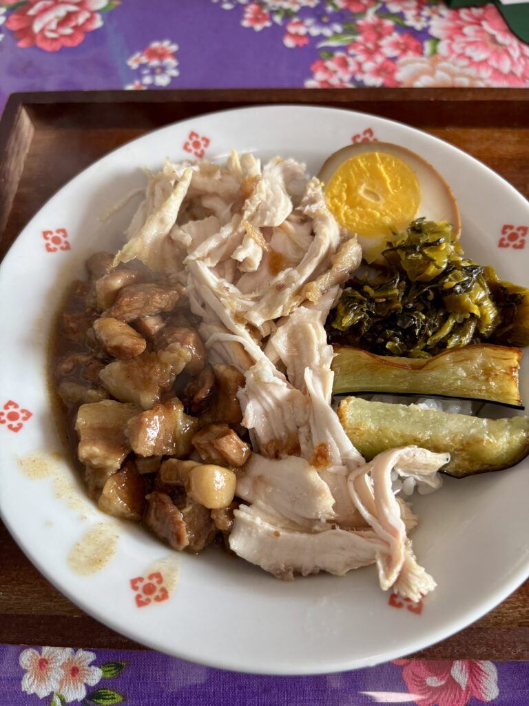 ルーローハン(魯肉飯)に鶏肉がのったミックス丼を頂く。