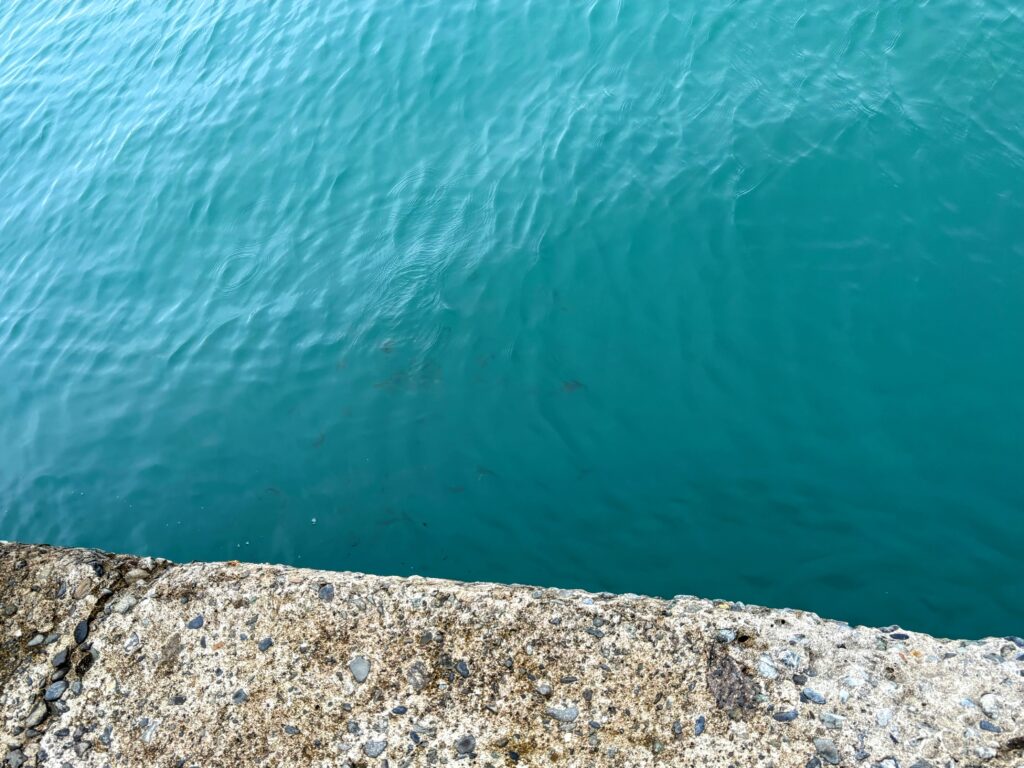 岸壁の下には小さな魚がたくさん泳いでいる。渓流釣りでは見られない光景だった。