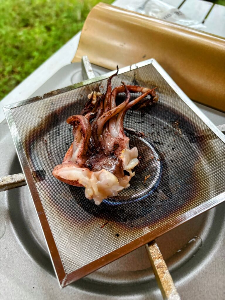 フライパンでなく、仕上げは網で焼いた方がこんがり焼け目がついて、香ばしくて美味しかった。ゲソは上手く焼こうと気合が入った。