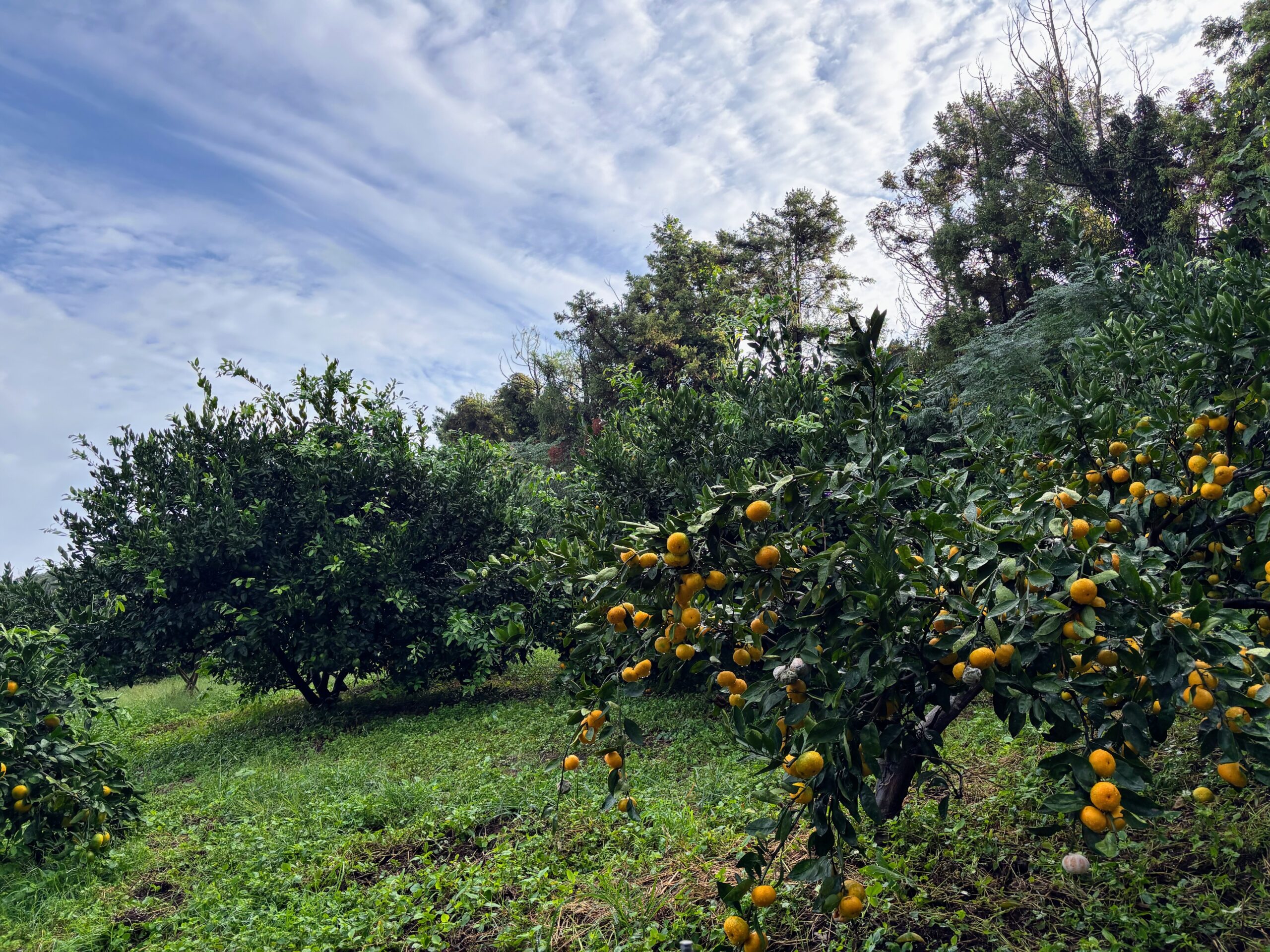 宿泊したバンガローの横にはみかん畑がある。みかん狩りのシーズンで、多くの観光客で賑わっていた。