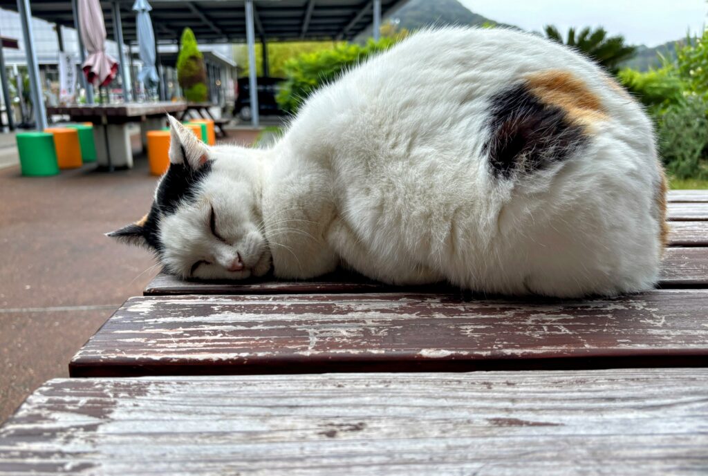 猫ものんびりモード。徹夜明けの人間みたいに爆睡していた。