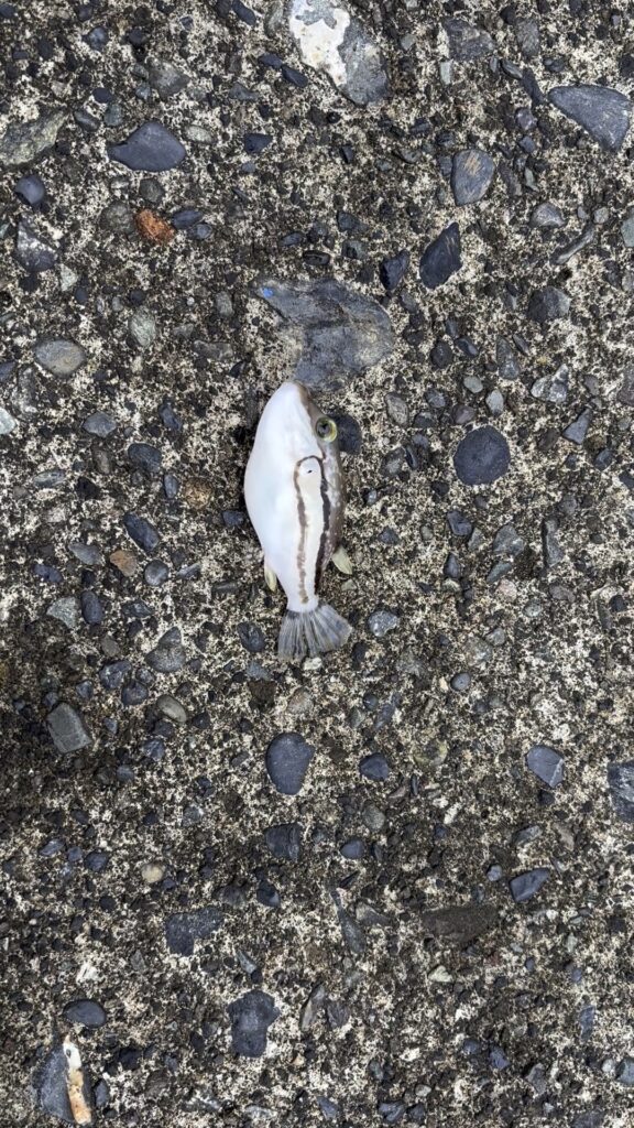 サビキのちょい釣りでは、小さいフグや小魚が釣れた。擬似餌は、小魚群に中に垂らしても、見向きもされないので、釣れない感じがした。
