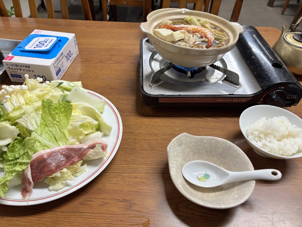 初日の心地よい疲労感を抱えながら、民宿での温かい食事と布団のありがたみを噛み締める。