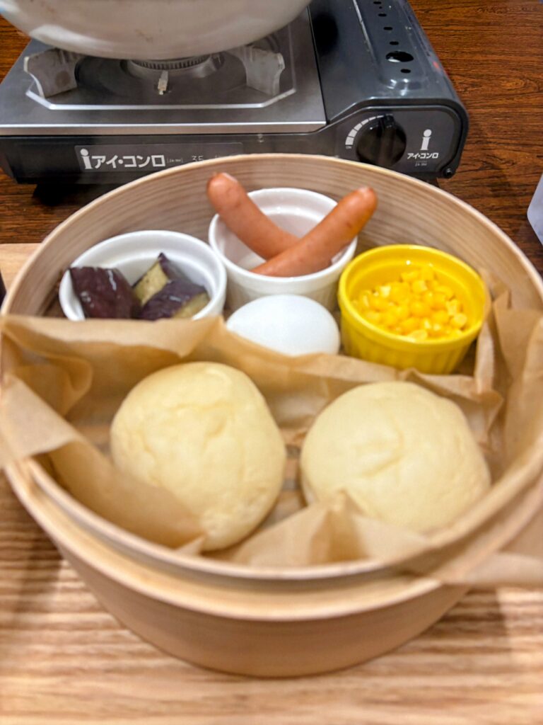 朝食は洋食である。面白いのは、昨晩に引き続き蒸し料理だということ。パン、ソーセージ、卵、茄子が全て蒸されている。結構おしゃれだ。若い人たちがやっている宿だけのことはある。
