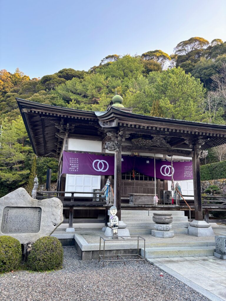 山上の境内は静寂に包まれており、登り切った達成感と共に本堂と大師堂で般若心経を唱える。
