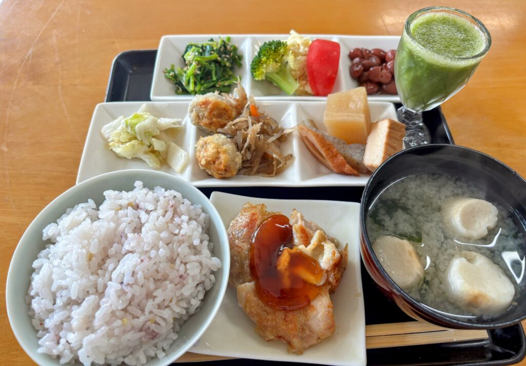 安芸の町中にある「カフェ ハマカワ」で昼食タイムとした。ランチのメニューは一択しかないが、地元の食材で作られた豪華なセットだ。栄養のバランスが半端ない。店内は地元の常連さん達で賑わっていた。