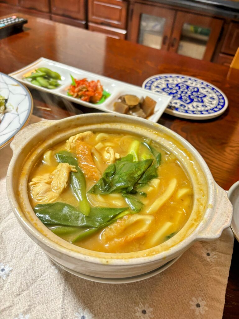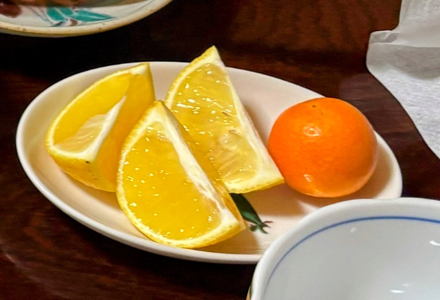 晩御飯は、ハンバーグにカレーうどんというボリューム。キンカンに、今旬の柚子くらいの小さな果物の黄金柑が、さわやかな香りで果汁がたっぷりで美味しかった。