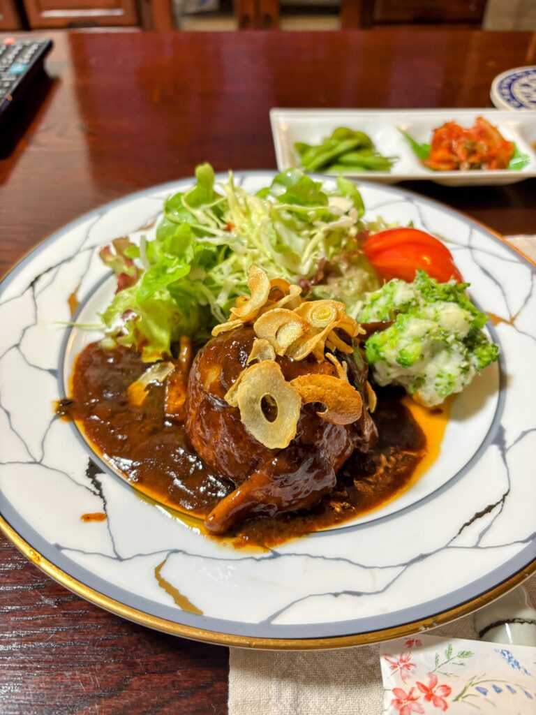 ようやく、今日の目的地である「民宿かがみ宿」に到着した。15時から雨予報だったが、幸いにも降り出すのが遅れ、雨に降られずに宿入りできた。一軒家で、まるで親戚の家に来たような温かい宿だった。