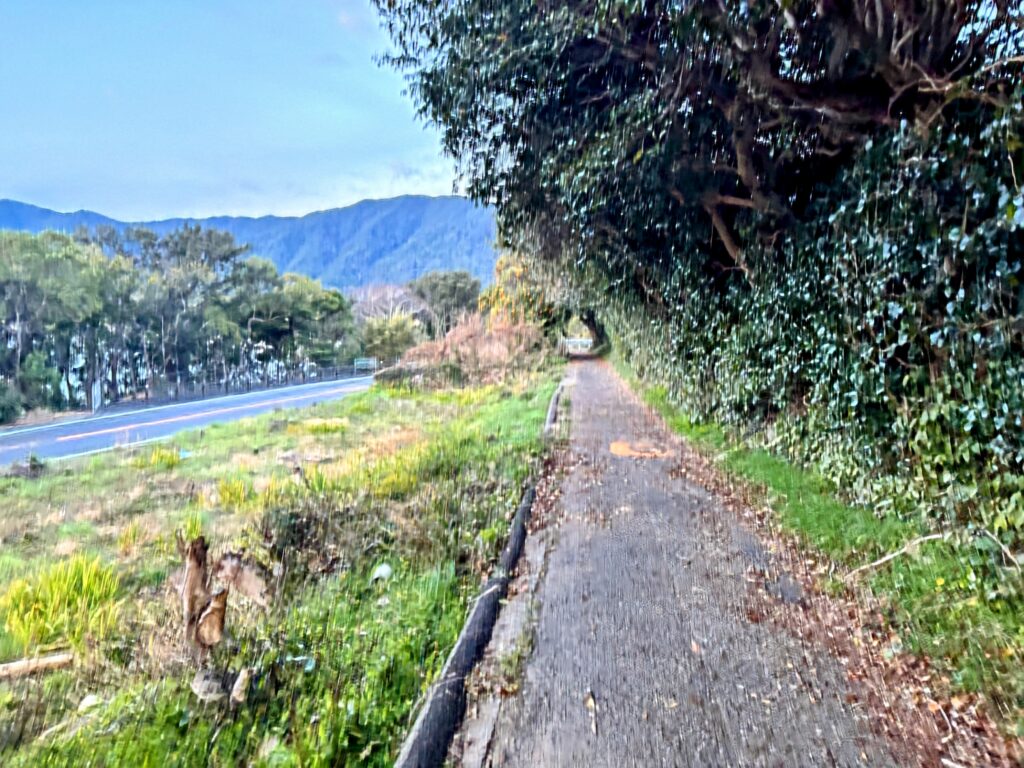 海岸線に沿ってアップダウンを繰り返しながら進む。果てしなく続くような一本道だが、空身の軽快さと、「今日でついに最長区間が終わる」という期待感が背中を押してくれた。