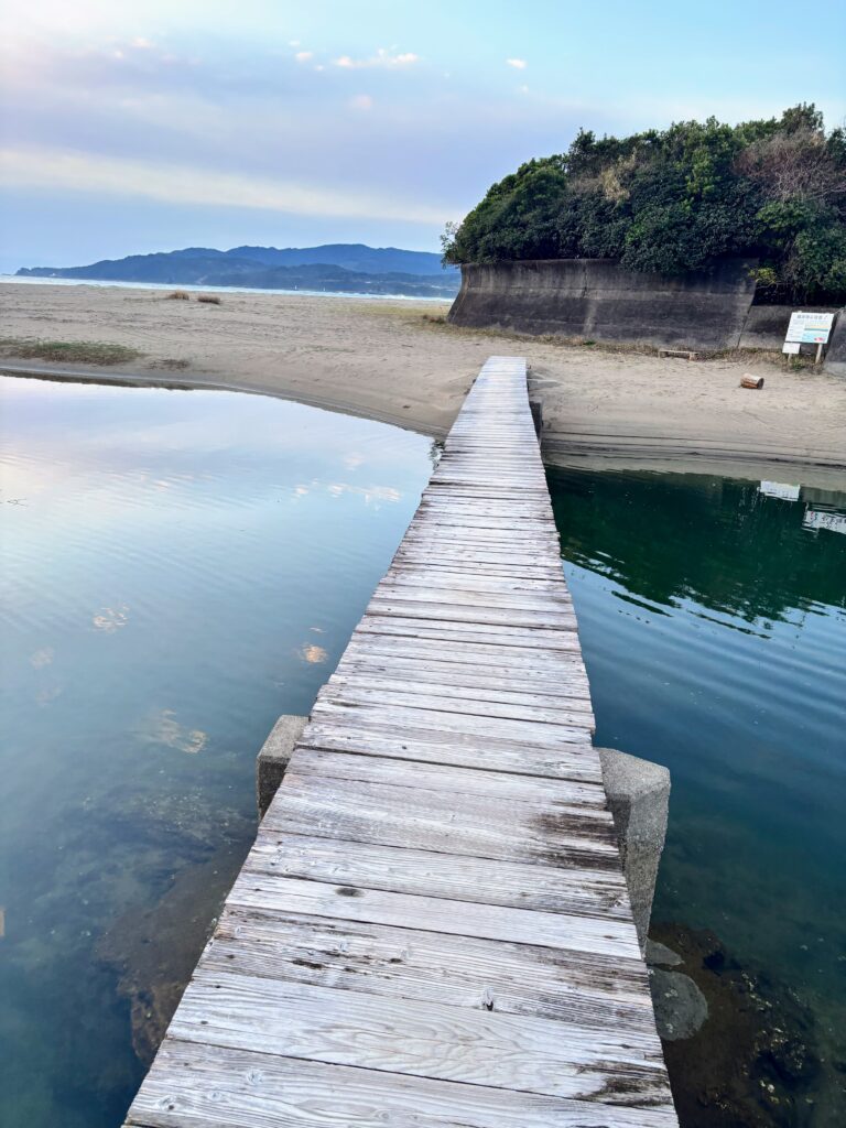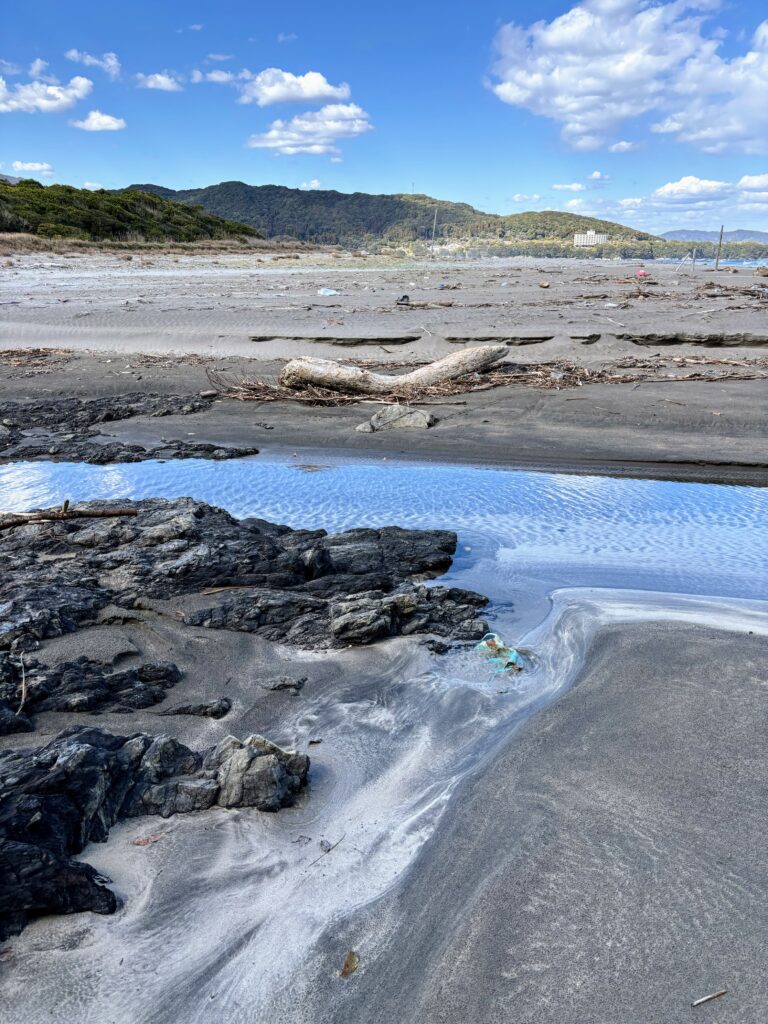 行きとは違って砂浜のルートを歩いてみた。足摺岬側で1箇所、川を渡る場所があるのだが、今日は水が少なかったのでジャンプで飛び越えた。ギリギリセーフ。