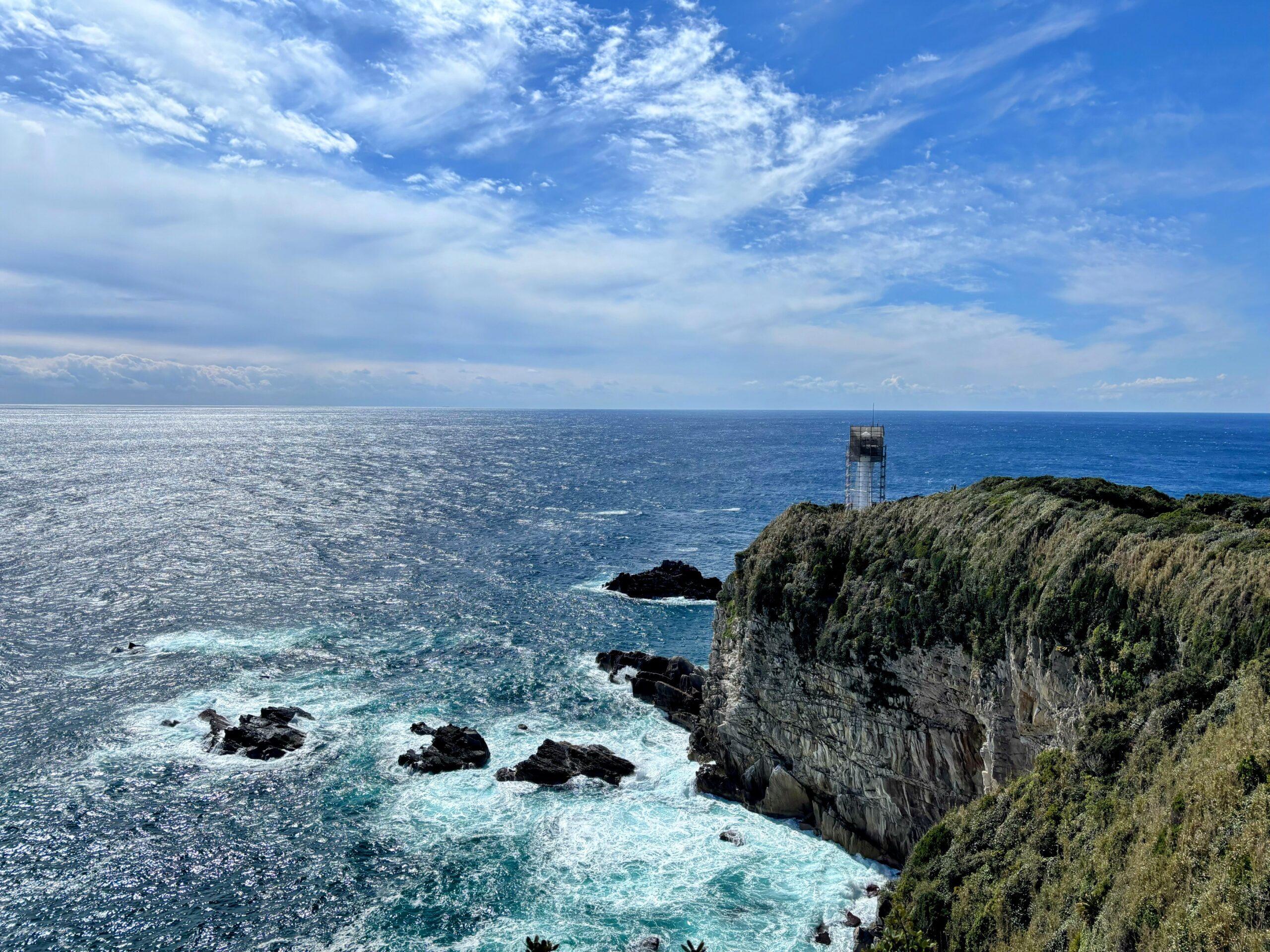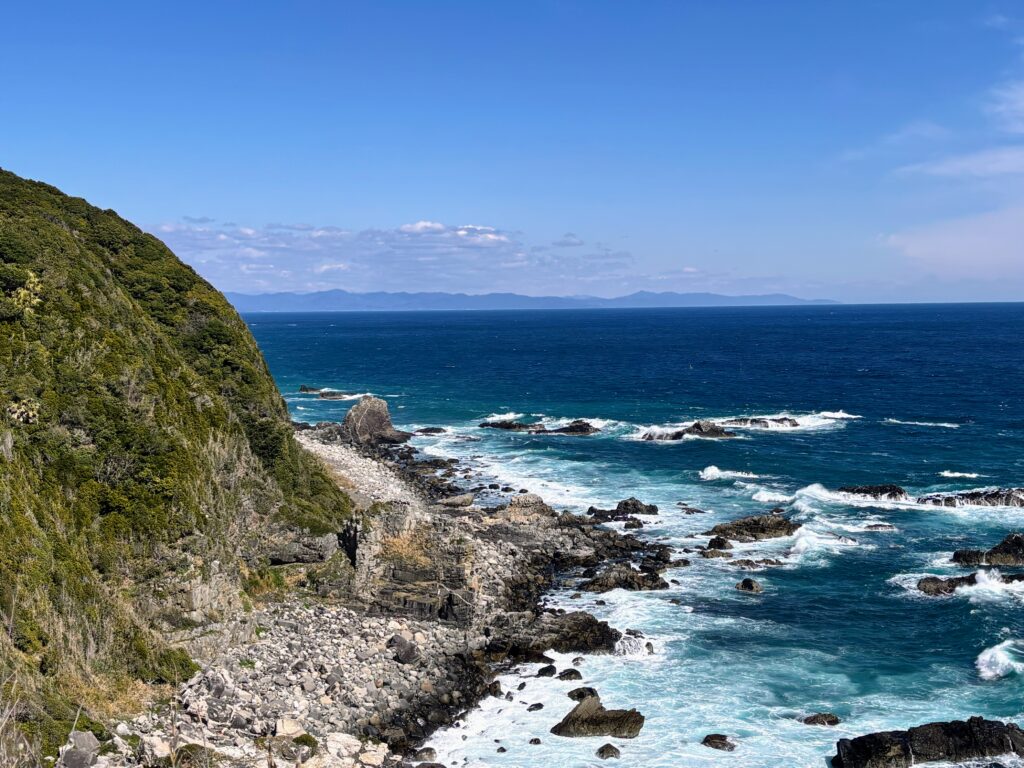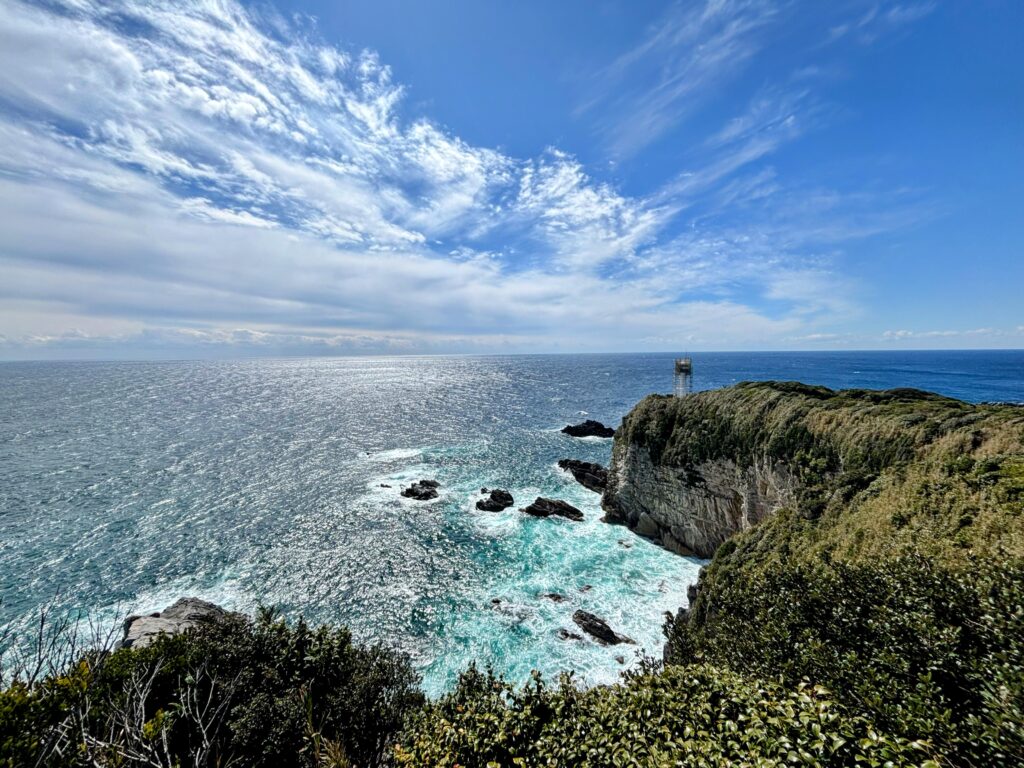 参拝後、すぐ近くにある足摺岬の展望台にも立ち寄った。目の前に広がるのは、丸みを帯びた水平線と紺碧の太平洋。地球の丸さを実感できる、まさに「最果ての絶景」だった。