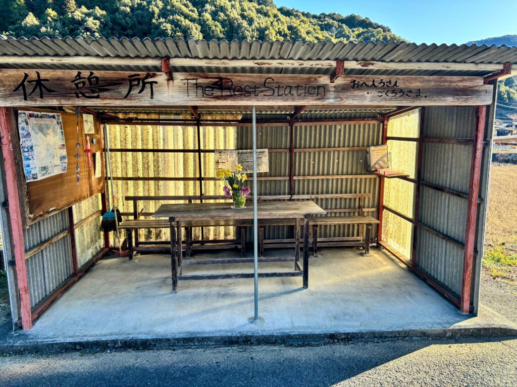 途中、お遍路さんのための休憩所があった。綺麗に花が生けられていて、とても素敵だ。この地域にお遍路さんが温かく受け入れられている文化を肌で感じた。