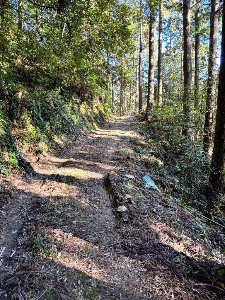 峠付近では舗装道路を離れ、1.4kmほどの土の遍路道に入る。これが足にも気分にも良いアクセントになった。