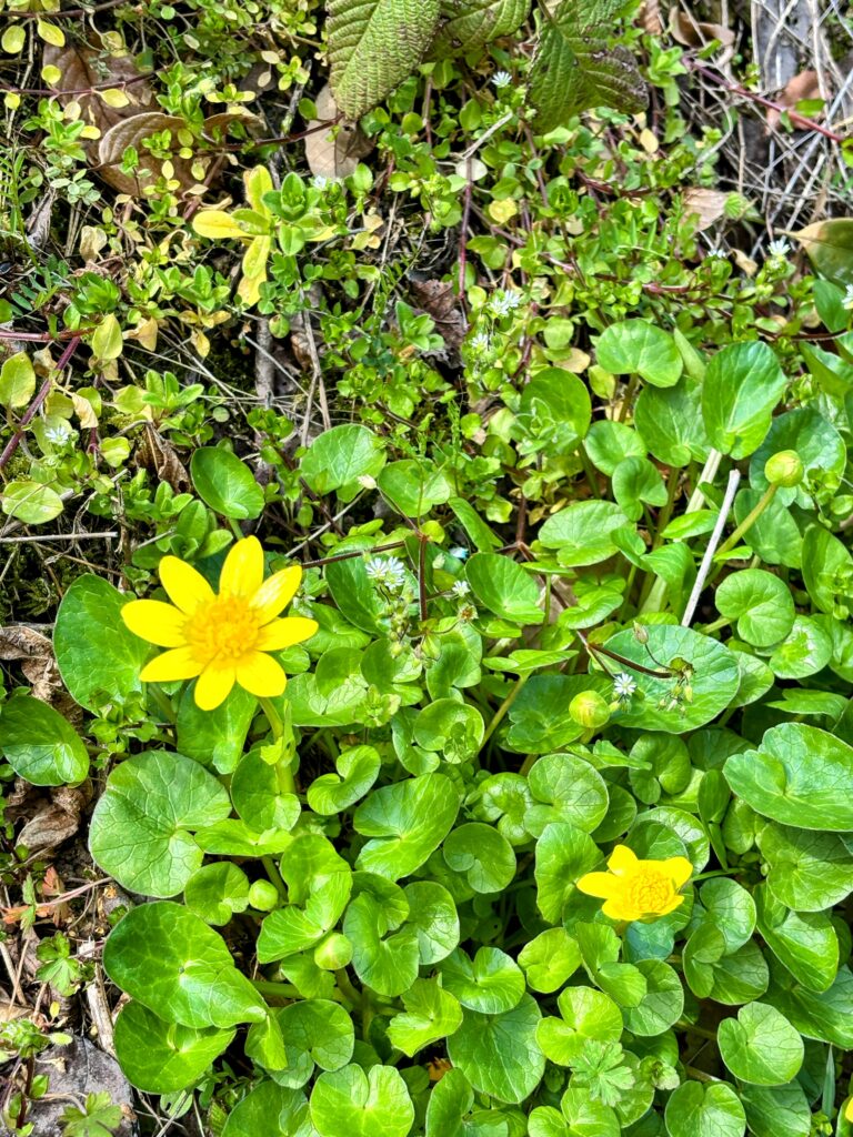 登りよりも、下り坂の方が歩きやすかった。道路端にはいろんな花が咲き始めていて、春を感じる。