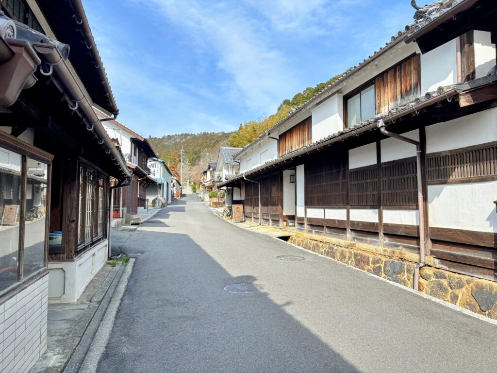 江戸時代の街道みたいな道も歩く。これまで歩き遍路の道中で古い町並みをいくつか見てきたが、ここが一番規模が大きい。まさに江戸時代を彷彿とさせる光景だ。