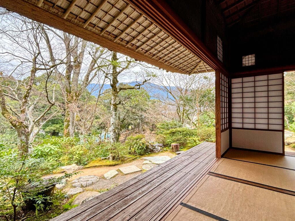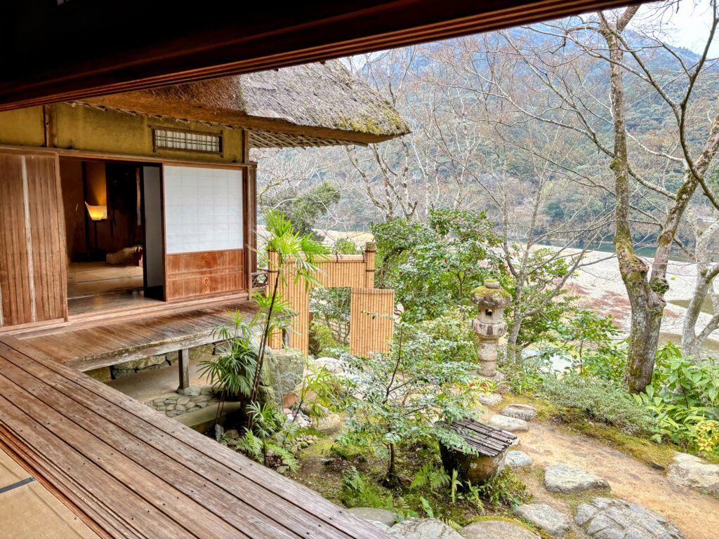 ここは明治時代に建てられた数寄屋造りの名建築で、肱川などの自然を活かした借景庭園が見事だった。「ミシュラン・グリーンガイド・ジャポン」の1つ星を獲得したこともあるというのも頷ける美しさだ。