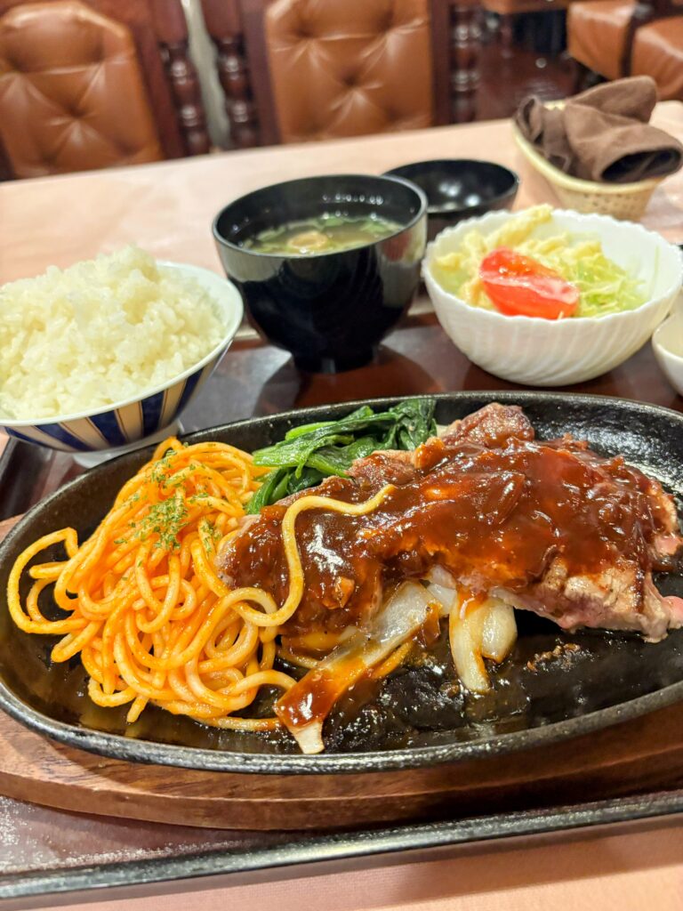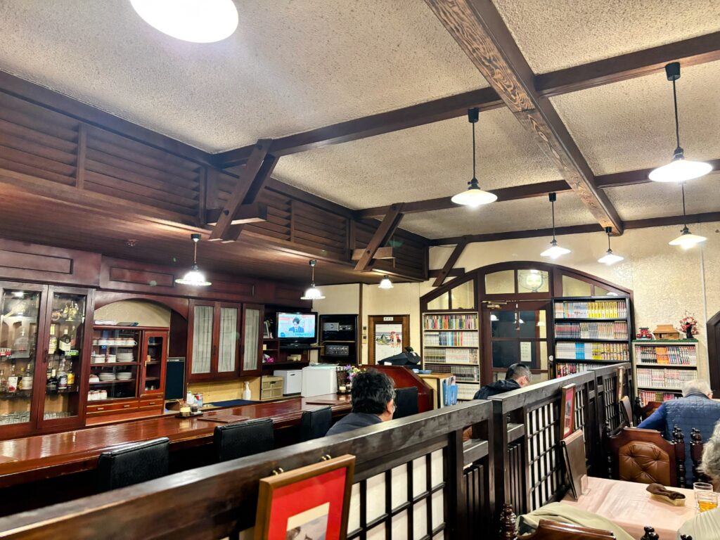晩御飯は、下にあるシャンソンかな?が流れる素敵な感じのレストラン。ステーキでタンパク質を補充。漫画も充実度もすごった。人気店のようで、ひっきりなしにお客さんが来る。