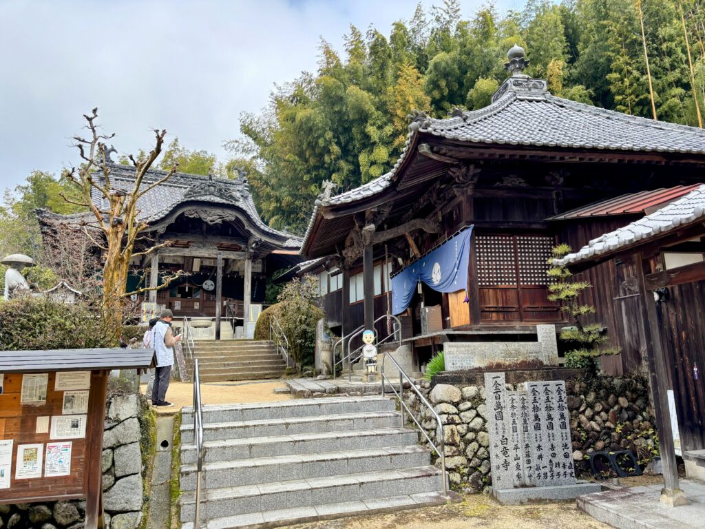 登りはきついが、境内からの景色は抜群で、遠くに海も見渡すことができる。ここには天然温泉付きの宿坊もあるそうで、夕方や夜の景色はさぞかし綺麗なんだろうなぁと想像が膨らむ。