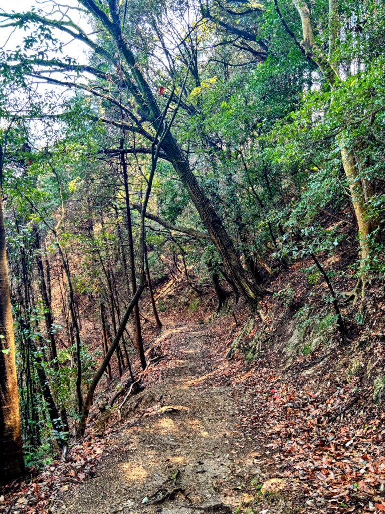 57番・栄福寺を打ち終えると、次に向かう第58番・仙遊寺はこれまでの平坦な道のりから一転する。標高約300メートルの作礼山の中腹にある山岳霊場のため、本格的な登り坂が待ち受けているのだ。実際に歩いてみると、標高260メートル付近まで一気に登ることになる。