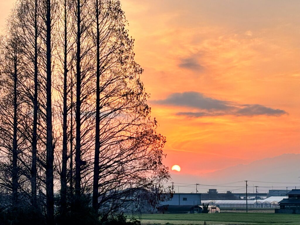 歩き始めると、きれいな朝焼けの石鎚山が見え、さらに美しい朝日も拝むことができた。
