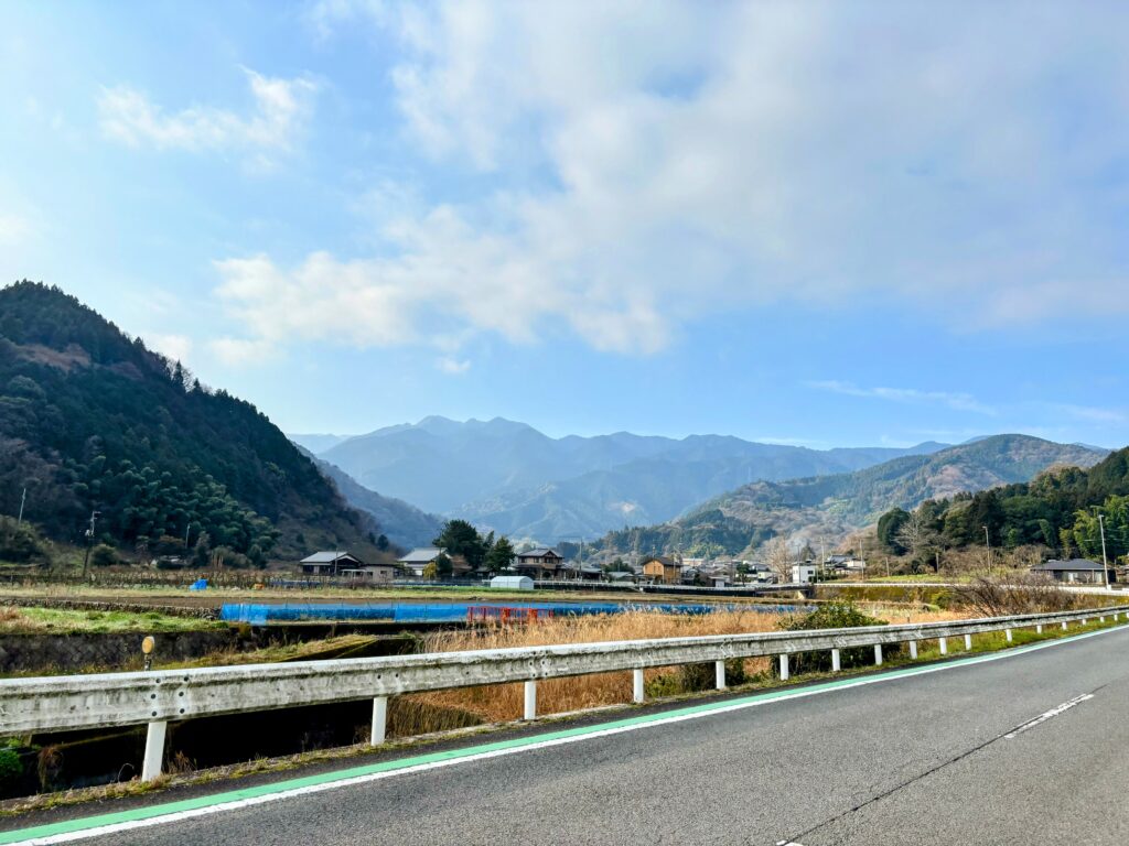 10キロ歩いてコンビニに到着し、小休止。温かいホットコーヒーを飲み、昼食を買い出す。そこからいよいよ山に向かっていく。どんどん山が近づいてきて、どの山に登るのかがなんとなくわかってくる。