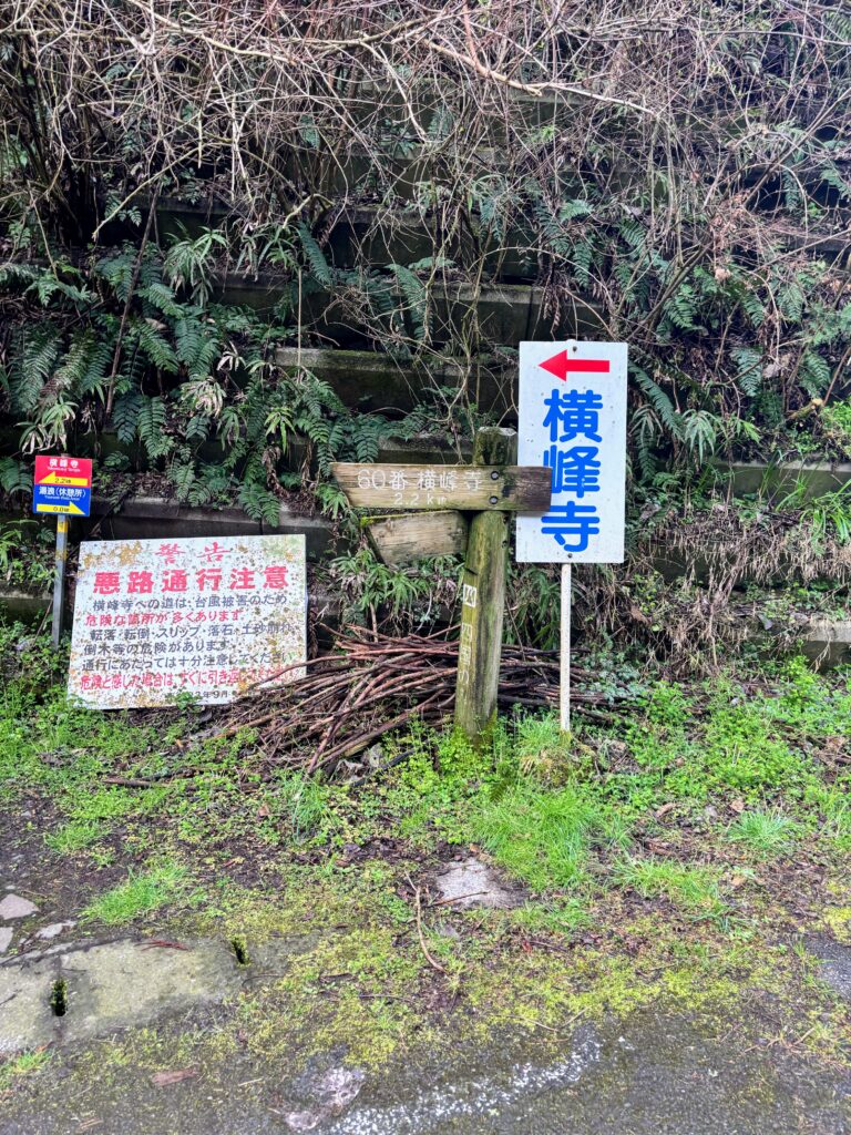 今日はまず、宿から約17km先にある第60番・横峰寺を目指す。横峰寺は西日本最高峰である石鎚山の中腹、標高約750mに位置する山岳霊場だ。「遍路ころがし」と呼ばれる四国霊場屈指の難所の一つであり、今日の最大の山場となる。