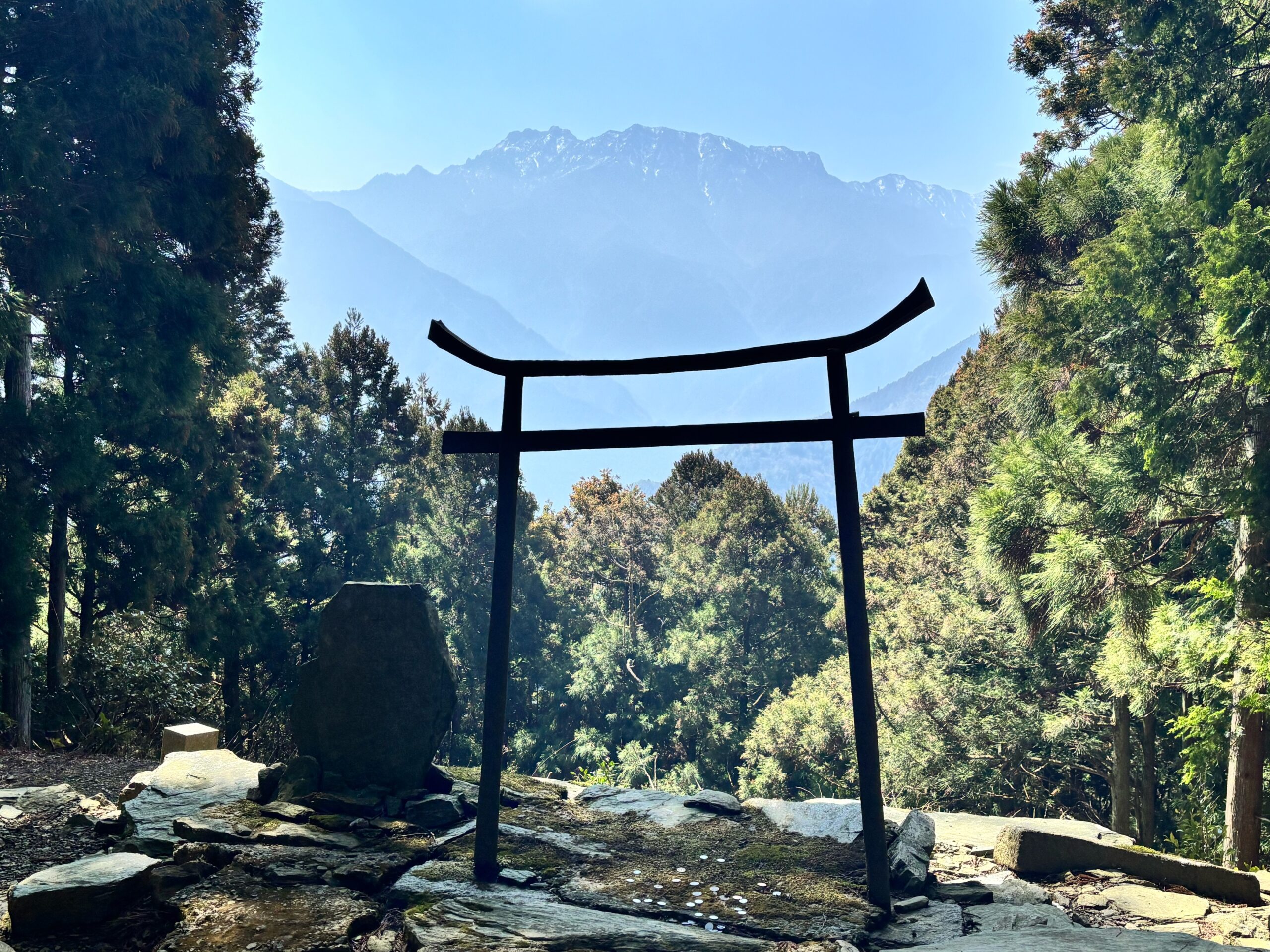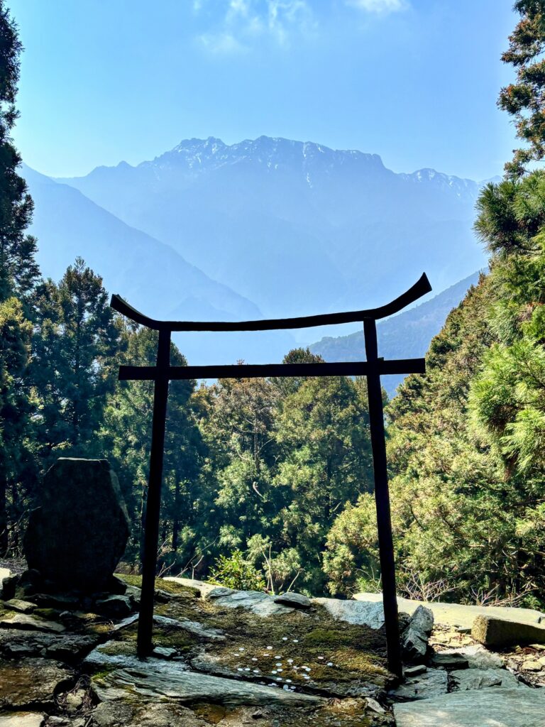 参拝後、山門に戻り、さらに上にある「奥の院 星ヶ森」にも行ってみることにした。100メートルほど登らなければならないが、ここは石鎚山の絶好のビューポイントなのだ。