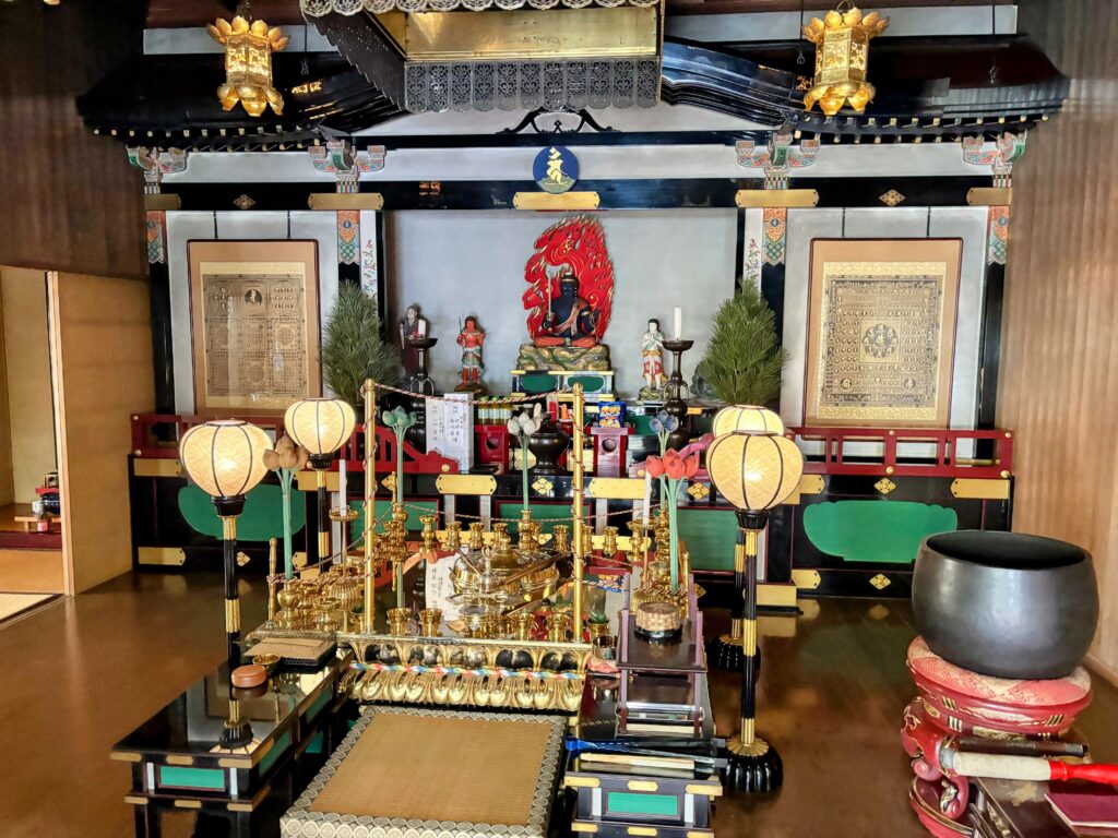 第61番・香園寺は、聖徳太子が開基したと伝わる歴史あるお寺だが、到着して驚くのはその外観だ。大聖堂のような近代的な鉄筋コンクリート造りの巨大な建物が本堂と大師堂を兼ねており、一見するとお寺とは思えないモダンな造りになっている。また「子安の大師さん」として安産や子育ての信仰を集めている。モダンな建物の2階に上がり、お参りをさせていただいた。