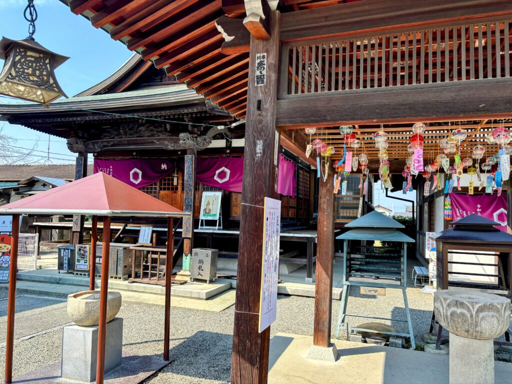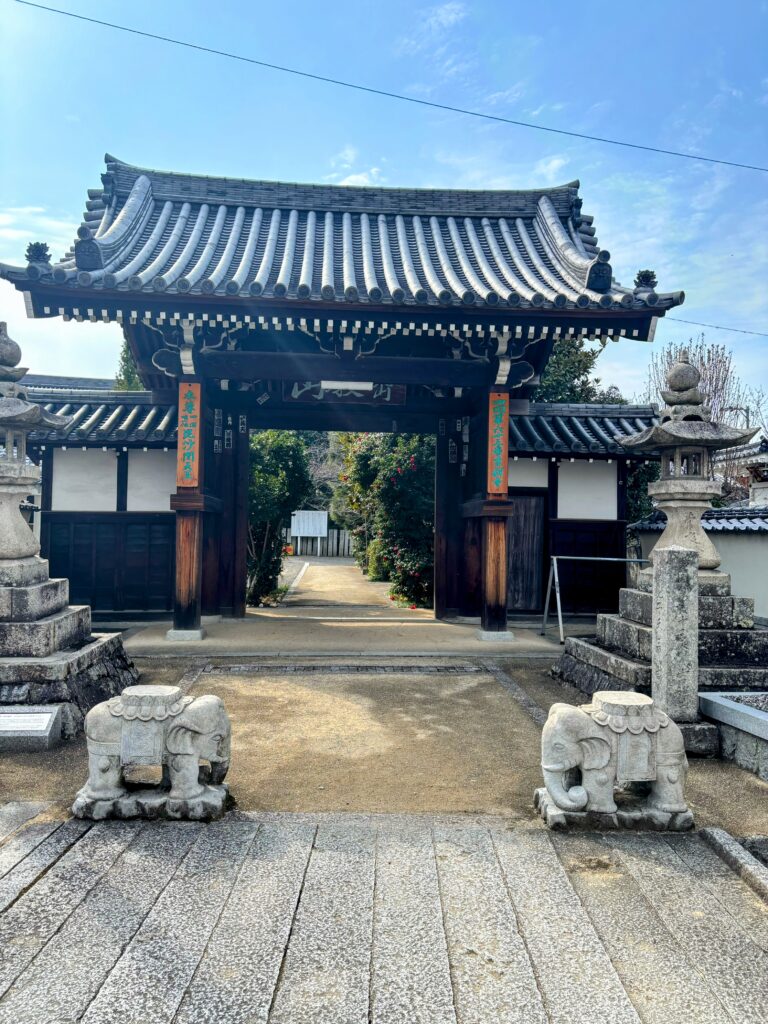 ここは聖武天皇の勅願によって建立された古刹で、安産を祈願する十一面観音像が本尊として祀られている。伊予小松駅のすぐ目の前という、非常にアクセスしやすい市街地に位置している。