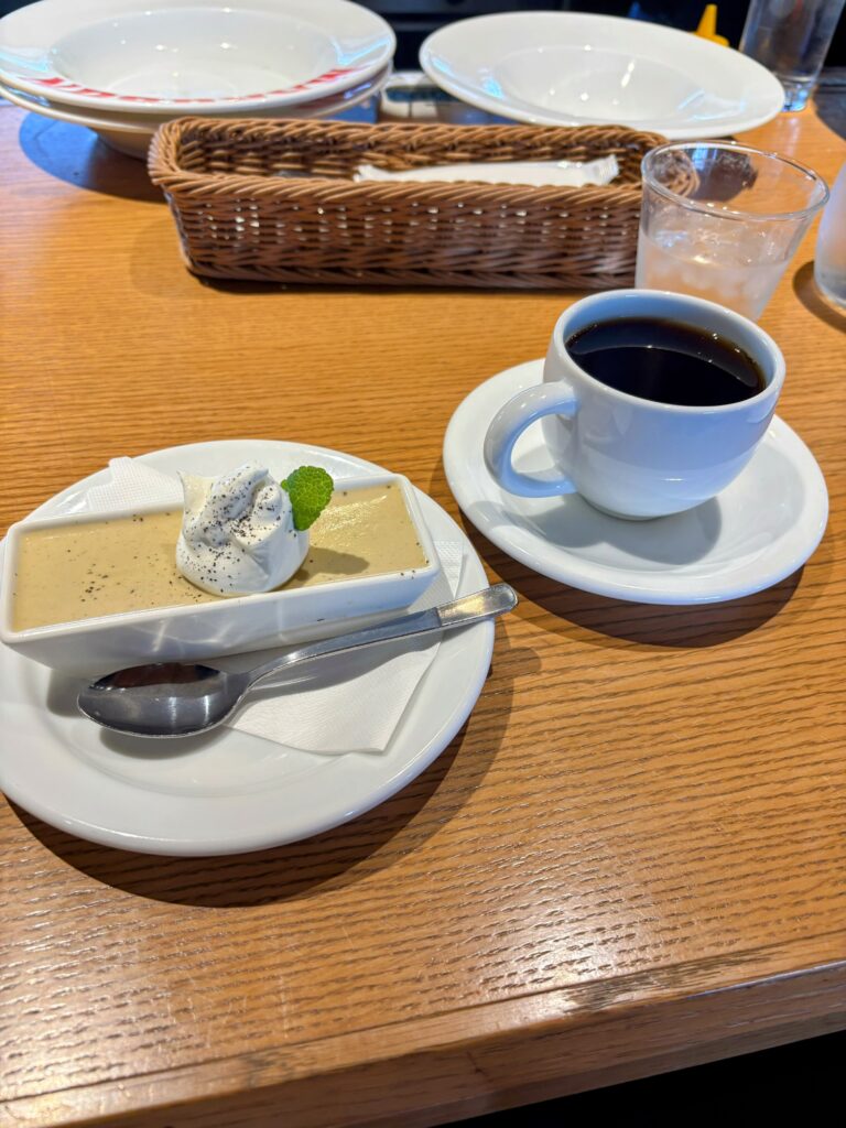 黒茶のプリンとコーヒーを注文。ただ、あまり文句は言いたくないのだが、コーヒーが少しぬるかったのが残念だった…。